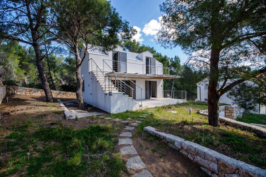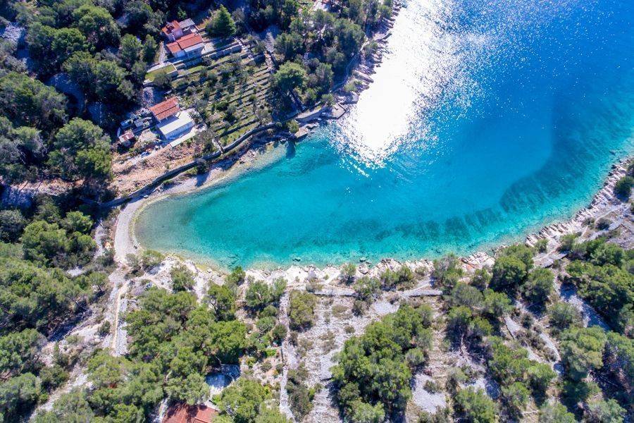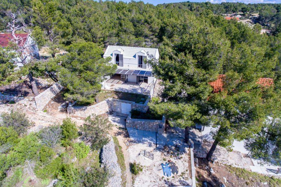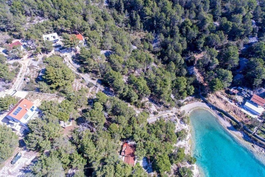 For sale is a charming house on 2 floors, south orientation and with a sea view. The house is built on about 340 m2 of land, and is located in an area where additional construction or extension is not possible. Both floors offer a sea view, and the lower floor is adorned with a terrace that is partly covered and partly uncovered. Ideal extended living room in summer days. The ground floor also has a kitchen with dining area, one bedroom and bathroom. An external staircase (in which there is a small pantry) leads to the 1st floor, ie. high attic, where there are two bedrooms and a bathroom, with balcony. The house has solar panels, connected to water grid and a septic tank, and has a preparation for electricity that should come soon to this beautiful and peaceful bay. The first inhabited place from this bay is only a few minutes away by car, and it is not far to walk to the place where they have various restaurants, shops, cafes, marina, and catamaran connections with Split and Hvar. The island of Brac is well connected with Split, and has a smaller airport.