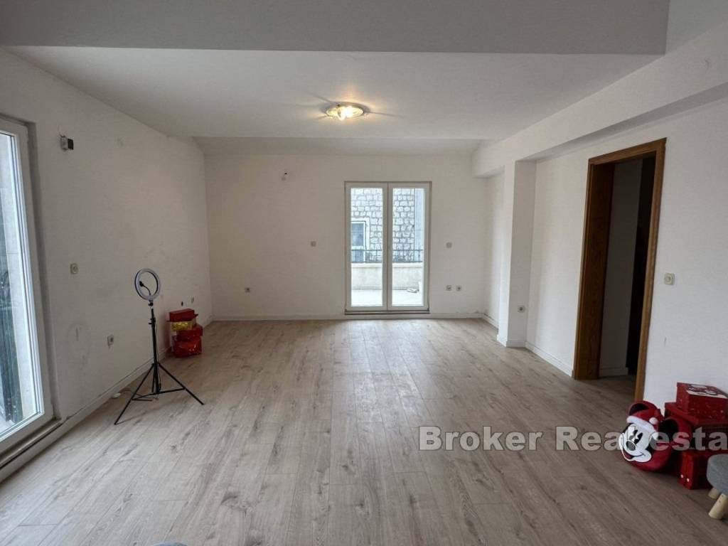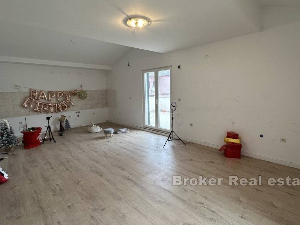 Partially renovated two-bedroom apartment in Kaštel Kambelovac, on the first floor of a stone house, close to the sea.   This two-bedroom apartment is located on the first floor of a stone house in the very center of Kaštel Kambelovac, just a short distance from the old Kaštela road.   The apartment’s location offers the perfect balance between tranquility and urban amenities, with shops, restaurants, and cafes within walking distance, and the beach and coastline just a few minutes away on foot.   The apartment spans 61 m² and consists of a hallway, kitchen with dining area, living room, two bedrooms, entrance hall, bathroom, and separate WC.   In addition to the indoor space, the apartment features two spacious terraces (9 m² and 18 m²) and a balcony of 3 m².   Additional value is provided by the garage and an outdoor parking space in the property’s courtyard, ensuring convenience and practicality for everyday life.   This apartment stands out for its excellent location, offering quick access to all essential services and a perfect balance between living in the center and being near the sea.
