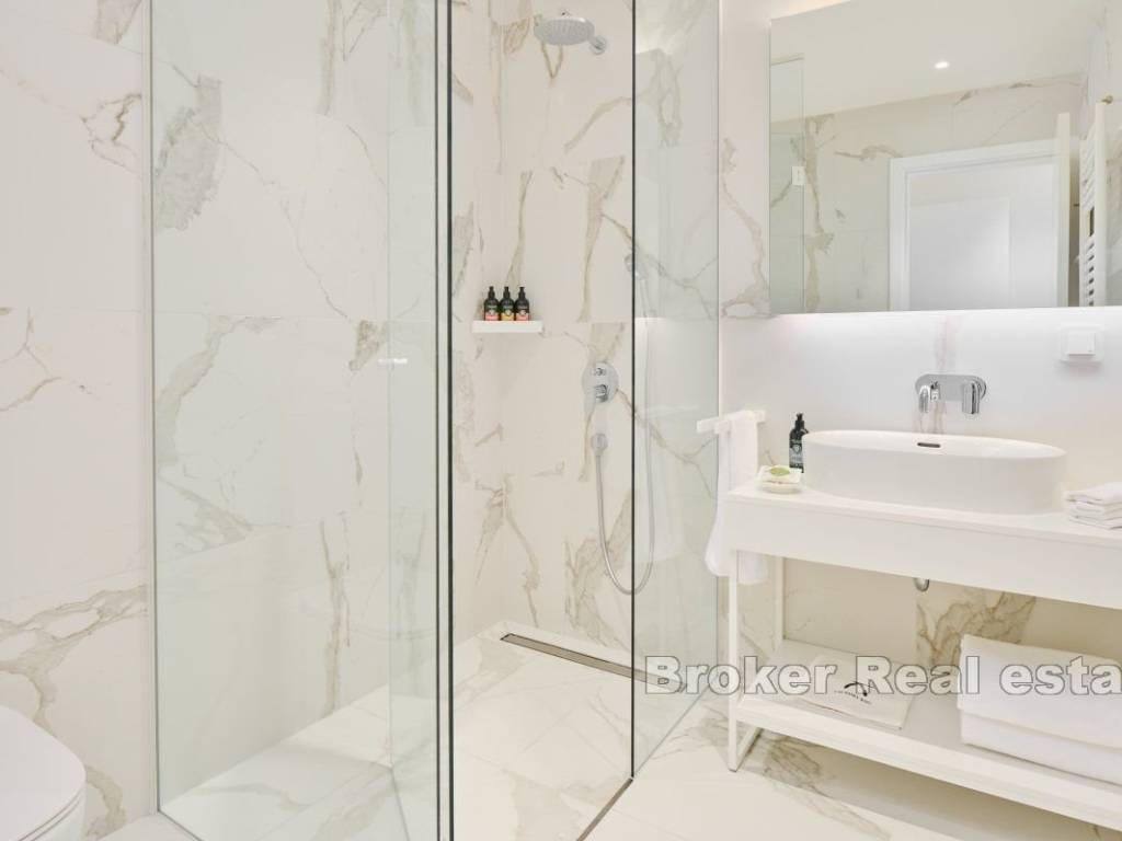 A luxury semi-detached villa located within a prestigious resort, spread over five floors and located in Savudrija, Istra. The property area is 419,40m2 with two additional balconies totaling 42,40m2 and a beautiful roof terrace with a swimming pool overlooking the sea, measuring 65,40m2 and an additional 29m2 of a beautiful swimming pool. For a sense of luxury, an elevator is provided, which further adds to the charm of the property.   The villas in this resort enchant with their luxurious design, while the choice of materials has significantly contributed to the additional luxury and comfort of staying in the property.   The villa consists of five floors. In the basement there is a technical room, bathroom, laundry room, wine cellar and a playroom. The basement area of the property is provided for a playroom, living room, bathroom and a room for pool equipment.   The ground floor of the property consists of an entrance hall that leads to three beautiful bedrooms, each with its own bathroom, a laundry room and a technical room. Also from two bedrooms, there is an exit to the balcony. The first floor of the villa is provided for the bedroom with its own bathroom, and an open space where the kitchen, dining room and living room are located, and an additional toilet. The second floor, also and the top floor of the villa, is provided for enjoyment. On the topo floor of the villa, there is a toilet and a terrace that is partly covered on the same, there is also spacious swimming pool with a view of the sea. All villas have flawless use of the resort’s services.   For each villa, you can choose a decoration package, while VAT is not included in the price.   There are also approximately five equal villas available: V46 – 419,40m2 + balcony 42,40m2 + terrace 94,40m2 – 2.079.000,00€ V47 – 419,40m2 + balcony 42,40m2 + terrace 94,40m2 – 2.026.500,00€ V48 – 419,40m2 + balcony 42,40m2 + terrace 94,40m2 – 2.026.500,00€ V50 – 419,40m2 + balcony 42,40m2 + terrace 94,40m2 – 2.026.500,00€ V51 – 419,40m2 + balcony 42,40m2 + terrace 94,40m2 – 2.026.500,00€ V52 – 419,40m2 + balcony 42,40m2 + terrace 94,40m2 – 2.026.500,00€