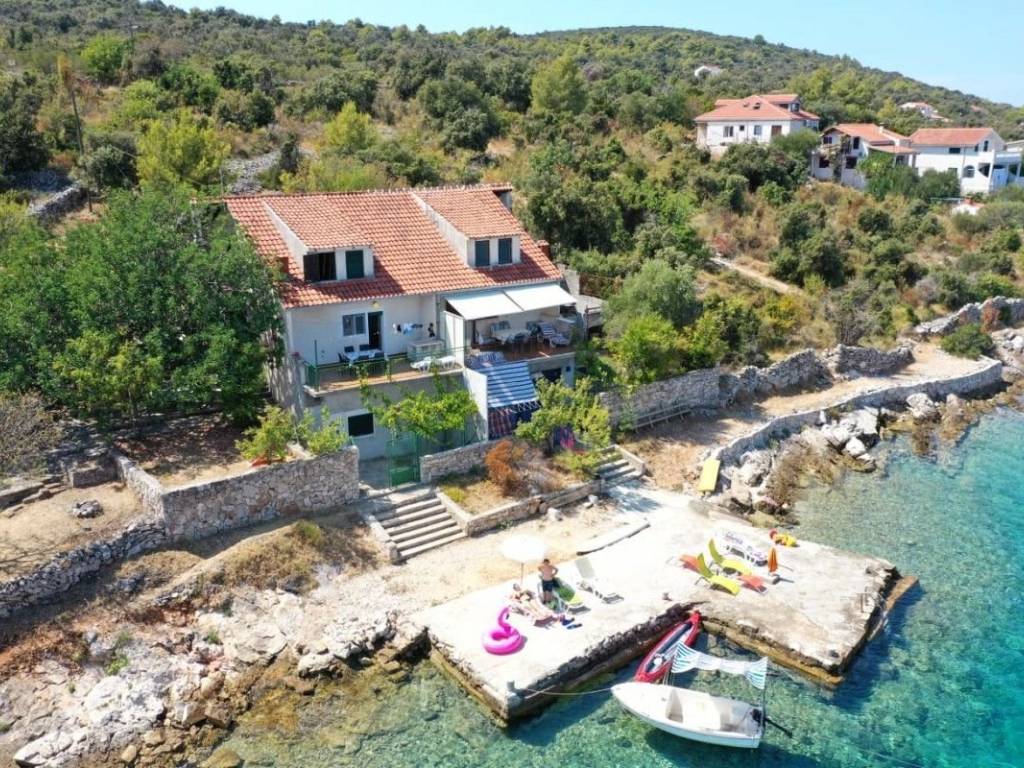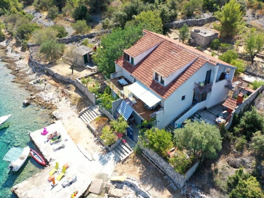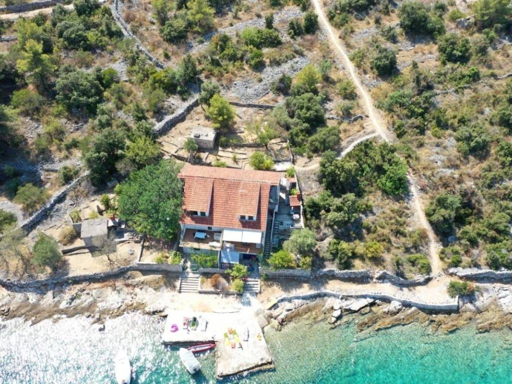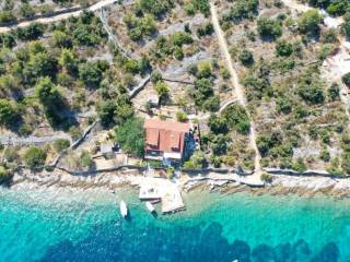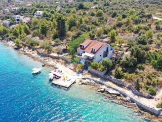 This property is situated in a prime location, directly on the seafront, with a pier and boat mooring right in front of the house. The ground floor includes a two garages with a ceiling height of 3 meters and a two water cisterns. On the first floor, there are two apartments, each with a living area of approximately 60 m² and a large terrace facing the sea. The second floor, located in the attic, also contains two 60 m² apartments. On the west side of the house, there is a smaller multi-storey structure with its own property number, and behind the main house there is an additional outdoor cistern. The house was built in 1990, with the last renovation carried out in 2015. Some further investment is certainly needed; however, the house is currently in good condition and suitable for living and tourist rental, except for the attic apartment, which is in an unfinished (roh-bau) state. The house has direct access by car and parking for several vehicles. The property is accessible from the sea by boat, and thanks to the deep water, it can accommodate larger vessels or yachts. The house is located in a peaceful setting ideal for a private getaway on the island of Drvenik, known for its crystal-clear sea and beautiful beaches. The island is connected to the mainland by regular ferry lines from Trogir and Seget Donji, operating several times a day, with a journey time of approximately one hour.