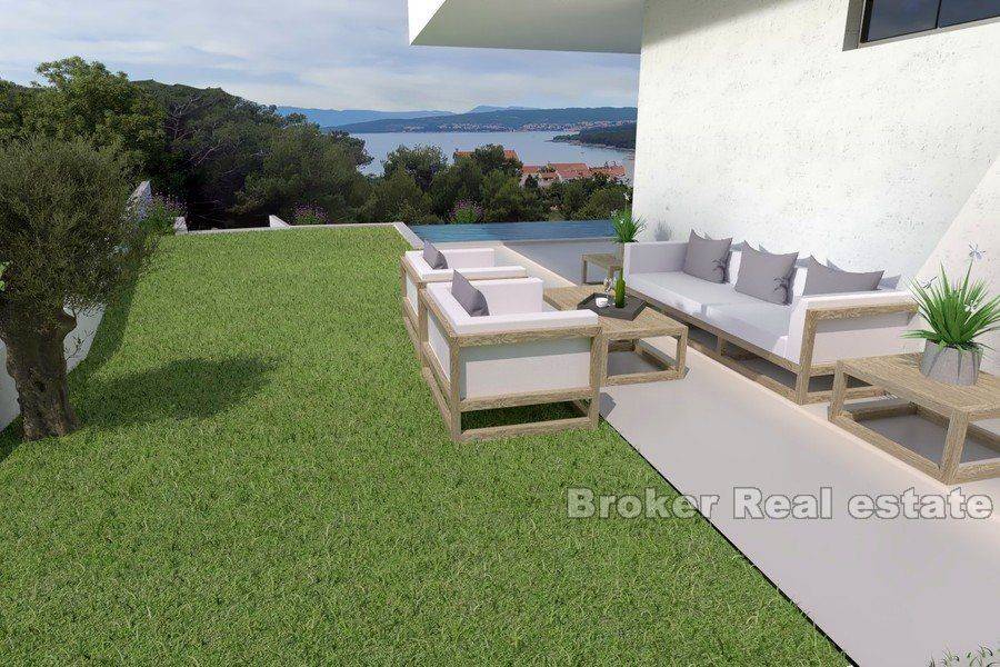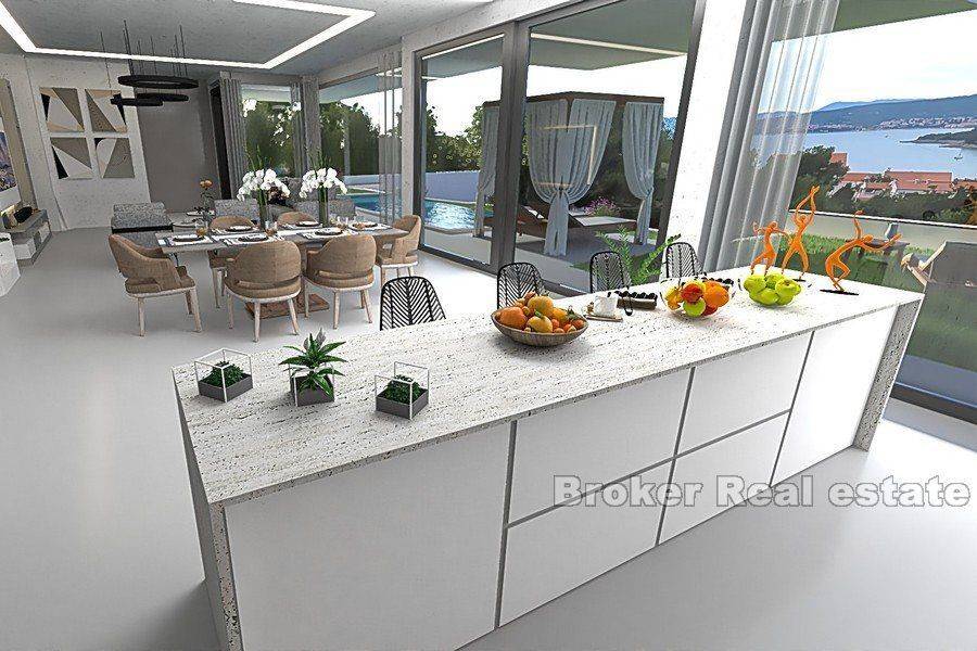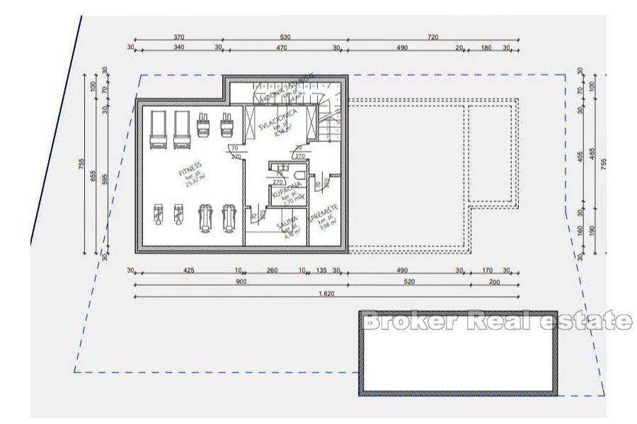 A luxury villa with a pool located in an attractive location with a beautiful view of the sea. The villa is located in a quiet location and is 550 m from the sea and beautiful beaches. Modern real estate with a living area of 272.36 m2 is spread over three floors. The basement consists of a corridor, a fitness room, a dressing room, a sauna, a bathroom and a storage room. The ground floor consists of an entrance area, living room with kitchen and dining room, bathroom and a spacious terrace of 32.75 m2. On the first floor there are four bedrooms with attached bathrooms and a balcony of 34.73 m2. Attractive location, beautiful sea view, modern design and proximity to the beach are just some of the reasons why this villa represents an ideal investment opportunity for tourism as well as for personal use throughout the year.