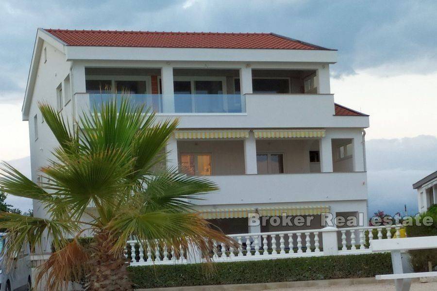 Apartment house on a sandy beach. 3 separate apartments. This family house on three floors is located in the most beautiful bay of the island of Vir, on a sandy beach with a view of the sea. For sale are the first and second floors of the house, which consists of three apartments in total. Each floor is for sale at a price of 414,000 euros. On the ground floor there is a three-room apartment with a total area of 91 m2. On the first floor of the house there is a two-room apartment with a total area of 66 m2 and a one-room apartment with a total area of 40 m2. An apartment with a total size of 66 m2 consists of two bedrooms, two bathrooms, a kitchen and a terrace of 22 m2, while an apartment with a total size of 40 m2 consists of one bedroom, a bathroom, a kitchen and a balcony of 6 m2. It is also possible to buy both floors at a price of 830,000 euros. Each apartment has 2 parking spaces in the yard. Each apartment is fully furnished with all appliances and furniture. The apartments have 3 *** stars and each room has a bathroom. The apartments are functionally equipped and warm. Distances: – shop – 200 m – restaurant – 200 m – bus stop – 200 m – city center – 4 km – airport – 30 km. The location of the house offers an excellent active vacation in the height of the season, and a quiet and relaxing vacation in the pre- and post-season. This holiday villa is a very convenient starting point for day trips to neighboring areas, in national parks, such as Krka, Plitvice, Kornati, Velika Paklenica and Mala Paklenica waterfalls. The island of Vir is connected to the mainland by a bridge and the island is located across from Zadar.