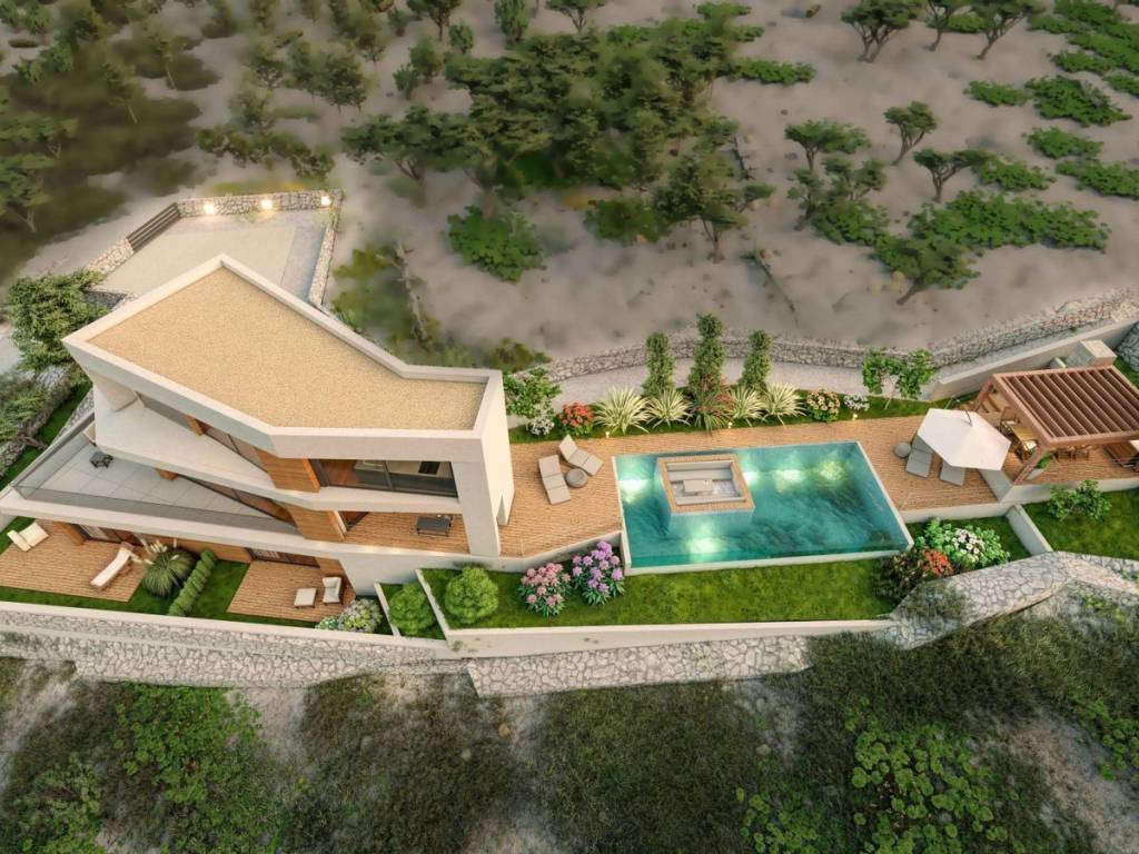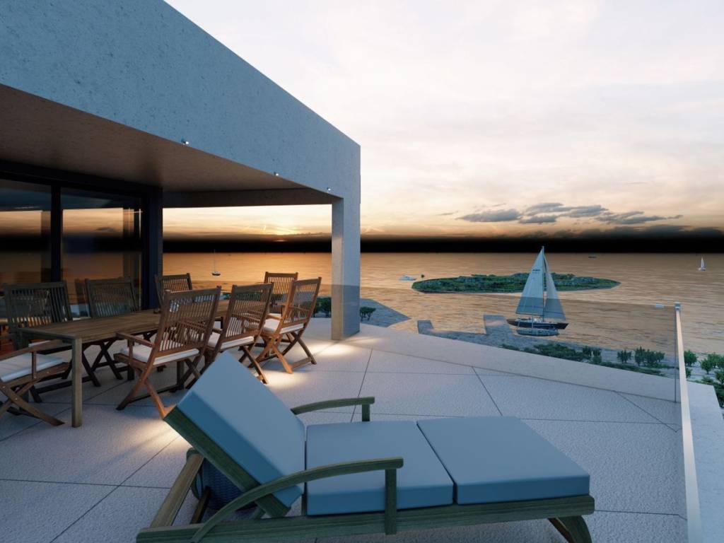 Located on one of the most beautiful Dalmatian islands, this luxurious energy-efficient villa offers a unique blend of contemporary design, premium materials, and an authentic Mediterranean atmosphere. Designed to maximize natural light and panoramic sea views, the villa features expansive glass walls that seamlessly connect the interior with the exterior. Its minimalist aesthetic and high-quality materials ensure a sense of luxury and comfort. With a total net area of 192 m², the villa spans three levels, offering a perfect balance of privacy and convenience. GROUND FLOOR The entrance leads to three spacious bedrooms, each with an en-suite bathroom and a private terrace, providing a high level of comfort and privacy. Direct access to garden terraces further enhances the connection between indoor and outdoor spaces. FIRST FLOOR A spacious living room with breathtaking panoramic sea views serves as the focal point of this level. Adjacent to it is the fourth bedroom with an en-suite bathroom and a private terrace. The outdoor lounge area, large terrace, and infinity pool create a perfect setting for enjoying the open air at any time of the day. SECOND FLOOR The kitchen and dining area open directly onto expansive covered and uncovered terraces, offering uninterrupted sea views and blending seamlessly with the island landscape to extend the living space outdoors. The villa’s surroundings are designed with a strong emphasis on natural elements and privacy. The landscape preserves the authentic island environment with native plants, Mediterranean shrubs, and aromatic gardens. Unbuilt areas can remain in their original state at the buyer’s request. A tennis court is planned for the remaining part of the land, further enriching the property’s amenities. ADDITIONAL FEATURES: • Two outdoor parking spaces • Infinity pool (10×5 m) • Rooftop solar panels • Teak flooring on outdoor surfaces for a luxurious and durable finish • Energy-efficient heating and cooling system powered by heat pumps • Underfloor heating • PVC joinery with double-glazed insulated windows for optimal thermal and acoustic insulation • Terrace railings combining stainless steel and laminated safety glass All necessary permits have been obtained, and certain design elements can be tailored to the buyer’s preferences. Depending on individual requirements, personalization options include finishing materials and landscaping to ensure the villa fully reflects the owner’s style and needs. The villa is sold fully furnished, ready for immediate move-in under a “turnkey” concept. Kaprije is a car-free island known for its crystal-clear waters, untouched nature, and authentic island atmosphere. It offers peace and exclusivity away from the tourist crowds while remaining easily accessible from the mainland. Situated between two national parks (Kornati and Krka), Kaprije is just a 10-minute boat ride from Vodice or Tribunj and is also accessible via ferry from Šibenik. Its naturally protected bay is a favorite anchorage for sailors and an ideal retreat for those seeking tranquility and exclusivity away from the hustle and bustle of tourist hotspots