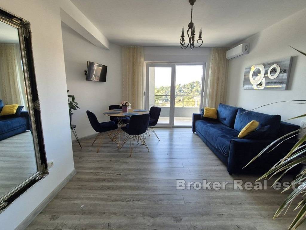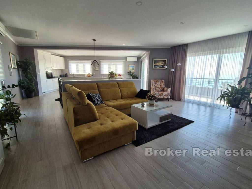 Modern detached house with 4 apartments for sale, located near Makarska, with an unobstructed sea view. The property is situated on a 269 m² plot, with 290 m² of living space spread across the ground floor and two upper floors. The ground floor includes a studio apartment, a spacious technical room, and a garage. On the first floor, there is a studio apartment and a one-bedroom apartment with access to the rear terrace, which serves as a shared space with a barbecue for all house residents. On the second floor, there is a spacious, elegant one-bedroom apartment, which is additionally equipped with a large kitchen and a wood-burning fireplace. All apartments have their own balcony with a stunning, unobstructed sea view. Built in 2019, the property is in excellent condition and ready for a new owner. In addition to the garage, the house offers parking space for additional vehicles in front of the property. Notable additional features include underfloor heating in the bathrooms, air conditioning in all rooms, solar panels on the roof for hot water, and installed central heating throughout the house. An excellent offer from the Makarska Riviera, a modern property with great potential for both private and commercial use.