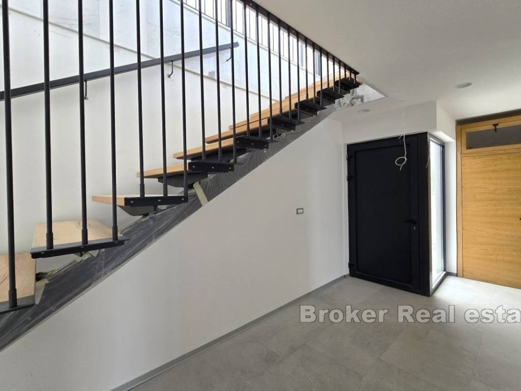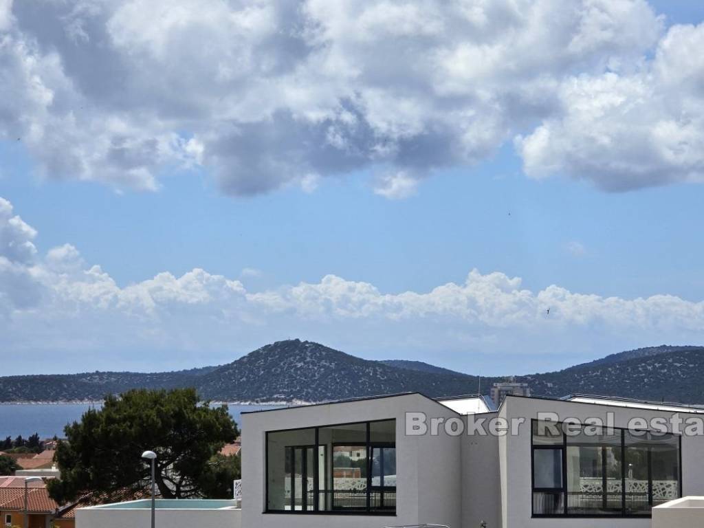 Newly built semi-detached building with sea view, located in a quiet neighborhood in Vodice. It is about two identical two-story villas. On the ground floor of each villa there is an engine room for the pool and three bedrooms with private bathrooms that ensure privacy and comfort. An internal staircase leads to the floor where there is an open concept space with a living room, kitchen and dining room. On the same floor there is also a guest toilet and a spacious terrace with a pool and a view of the sea. Each villa has several parking spaces, as well as a spacious garden that offers many possibilities for personal decoration, relaxation and social events. Considering the modern construction and the pleasant and quiet location, just a few minutes’ drive from all necessary facilities and local beaches, this is a property with significant potential for tourist business, as well as for year-round living.