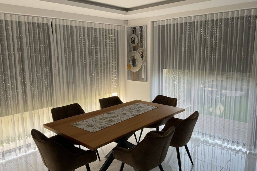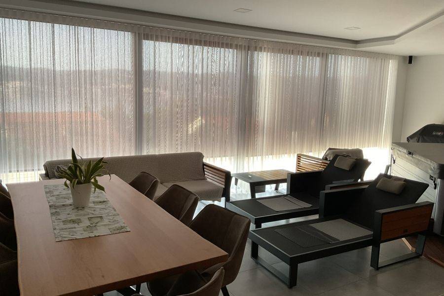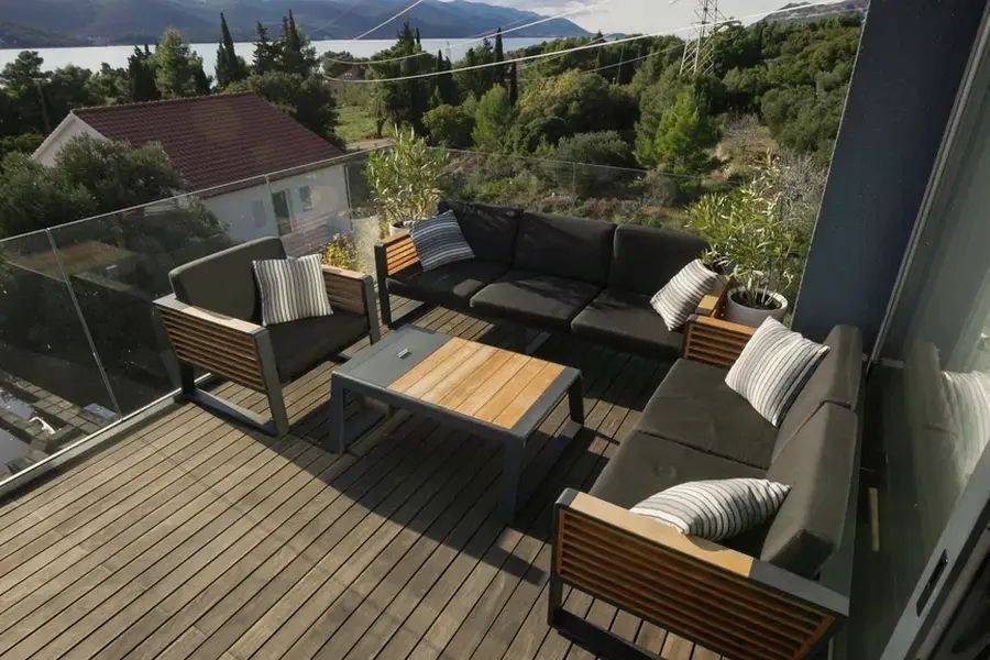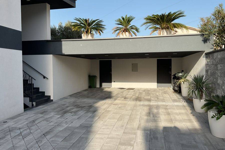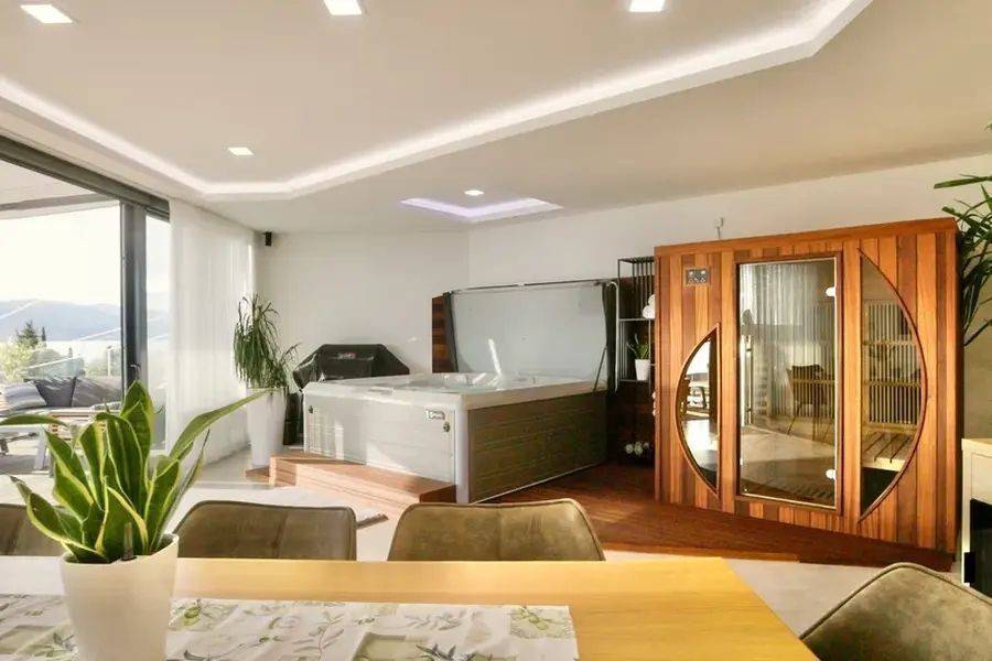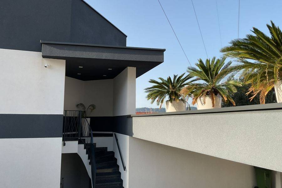 We are selling a modern villa with a sea view, with two apartments. The house has an excellent location with a beautiful view of the sea and surrounding islands. All other amenities are nearby. It is only 90 meters from the beach. Built in 2020, the ground floor of the house has a two-bedroom apartment with a jacuzzi and garden, while the first floor has a three-bedroom apartment with a terrace. On the third floor, there is a spa center, an indoor jacuzzi and a sauna with a terrace overlooking the sea. The house is modernly equipped with an energy certificate A+, video surveillance, alarms, electric roller shutters, a video intercom and an electric vehicle charging station (smart home). The house has great potential for tourism activities, given its location and design.