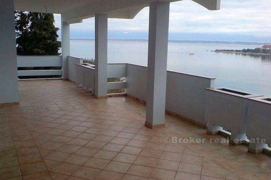 Villa is approximately 500m2 gross living area into which: garage (a separate building by the sea), basement and boiler room on the ground floor. At the 1st floor is luxury apartment with two bedrooms and a master bedroom and three bathrooms. From living room goes to a large terrace (cca70m2) with a beautiful view of the city Zadar and canal. In the middle floor is the laundry and drying room. Second floor is unfinished and has the same dimensions as the lower floor. House has central heating, air-conditioned and has a beautiful and large garden of 1500m2 (olive trees). The possibility of buying land (construction) by the house in an area of 2000m2 and an old house (stone on the coast approx 100m2).