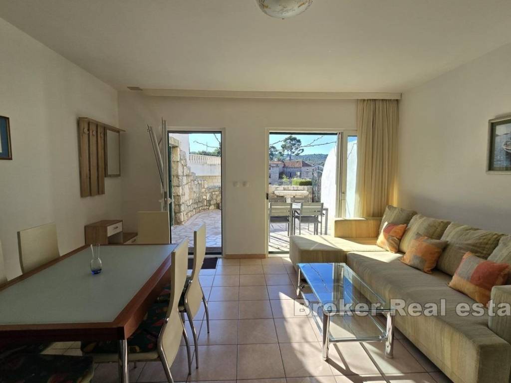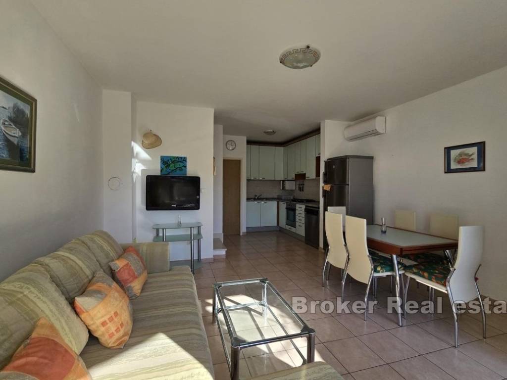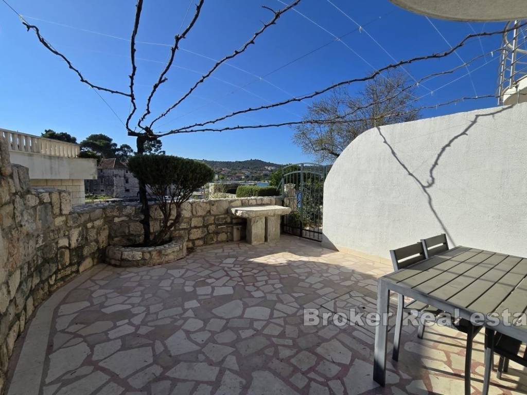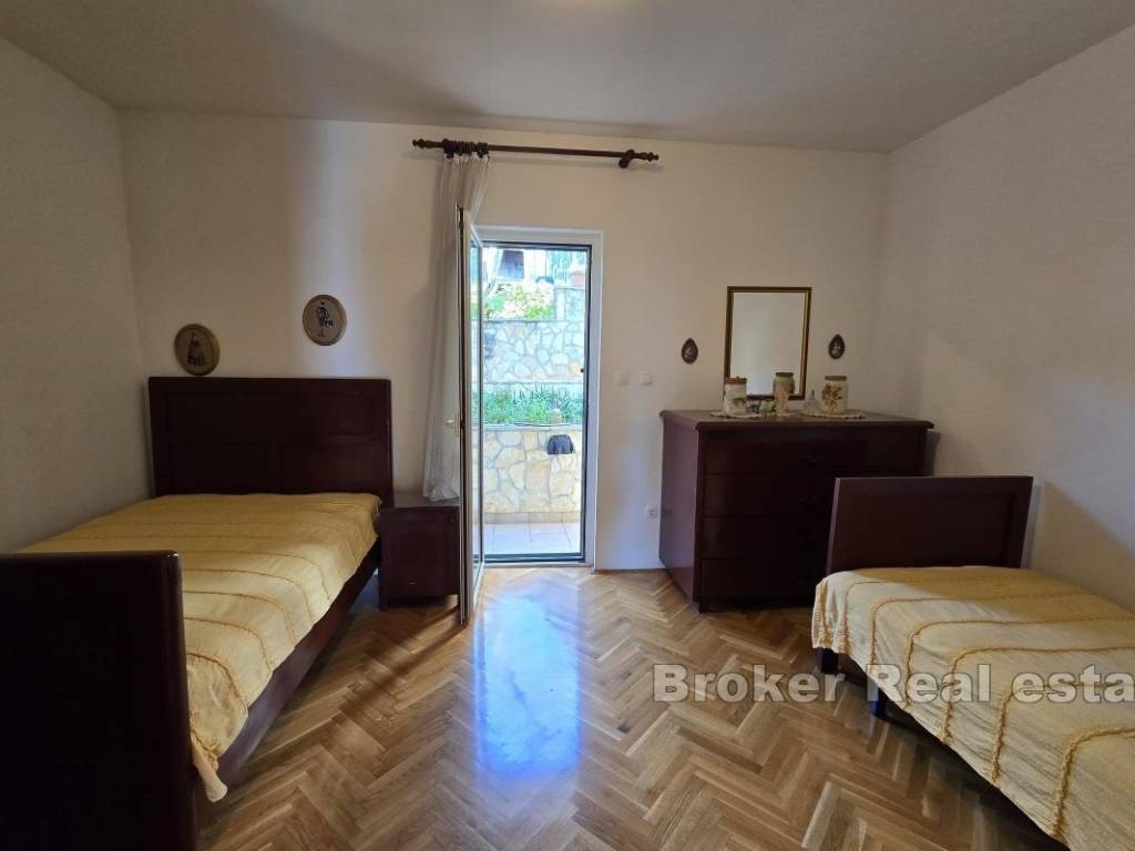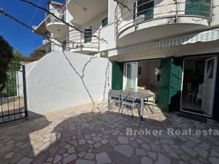 On a unique and exclusive location, right by the sea, a part of a house is for sale, spanning three levels. This property offers the perfect blend of comfort, privacy, and immediate proximity to the sea, with a captivating view of the coastline and the surrounding area. The house consists of two separate apartments: the first is duplex and located on the ground floor and first floor, while the second apartment occupies the top floor and has a private entrance from the back of the house. On the ground floor, there is a functional kitchen with a dining area, a spacious living room that opens onto a terrace with an incredible view of the sea and the surrounding nature. Also, on this level, there is a bathroom and a practical storage room. On the first floor, connected to the ground floor by an internal staircase, are two large bedrooms with access to a balcony, as well as an additional bathroom. This apartment is ideal for a family or as tourist accommodation, offering all the necessary comforts and privacy. The second apartment, located on the top floor, is 43.23 m² in size and includes additional outdoor spaces in the form of a loggia and a balcony with a total area of 6.42 m². Although in a shell-and-core state, this apartment offers great potential for finishing according to personal preferences and needs, and its elevated position provides a spectacular panoramic view of the sea. The property also includes a spacious garden of 220 m², perfect for outdoor activities, relaxation, or even building additional features such as a barbecue or outdoor seating area. Given its exceptional location right by the sea, this property offers enormous potential for tourist rentals, as well as for family life in a unique environment.