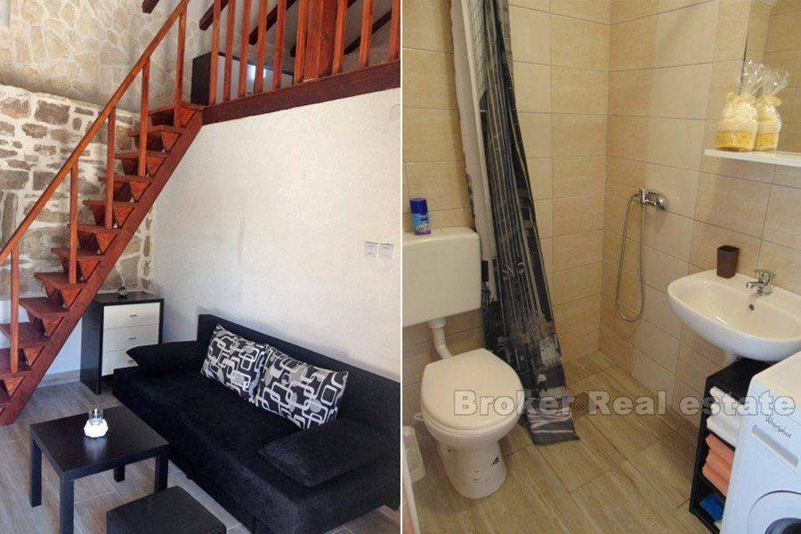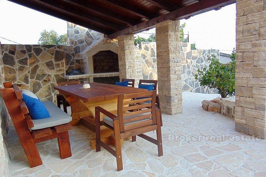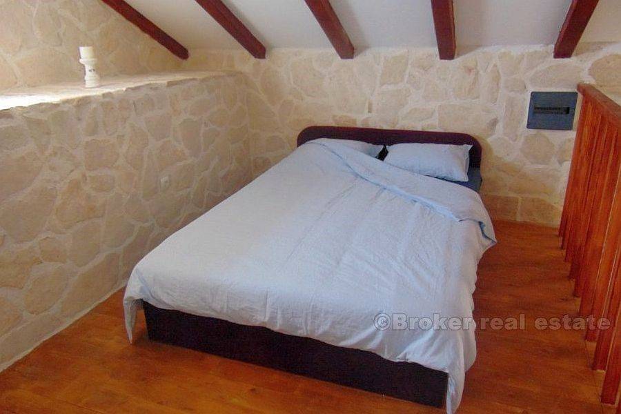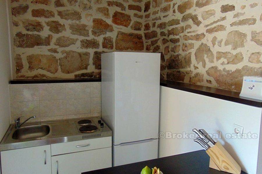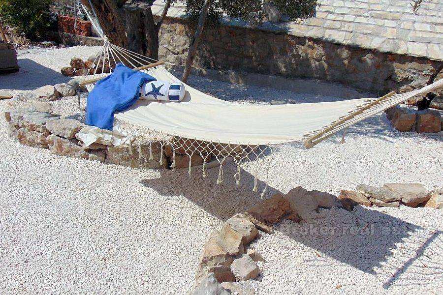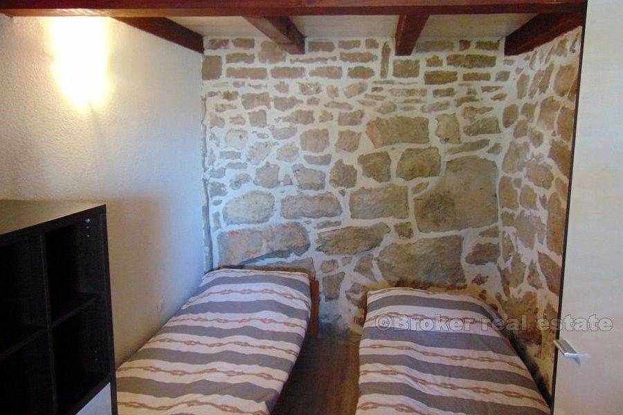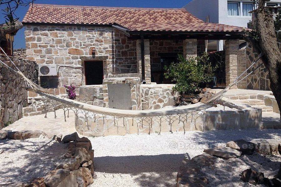 Beautiful stone house 50m2, built in Dalmatian style, located on a plot of 430m2. The house has been completely renovated this year. It consists of a living room, a room, a bathroom, a kitchen and the associated 12m2 gallery that has been converted into another room. Possibility of dividing the parcel into two or, if necessary, the possibility of building another 50m2 building. Distance from the sea is 250m.
