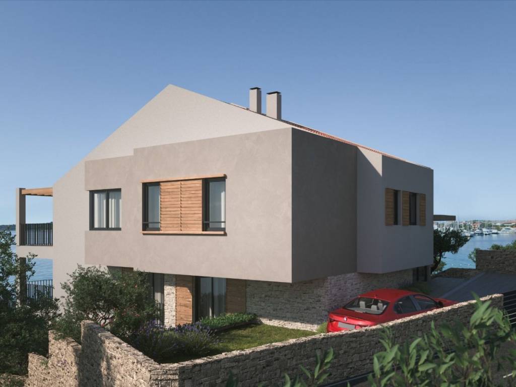 In the picturesque town of Murter near Šibenik, Croatia, high-quality apartments in a prime location are for sale. The building is located on the first line to the sea and offers breathtaking views and a luxurious living atmosphere. The apartments are currently under construction and completion is planned for April 2026.