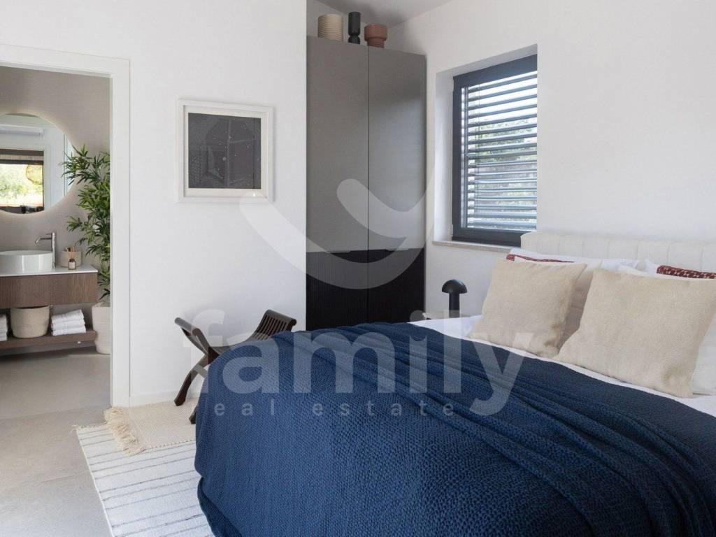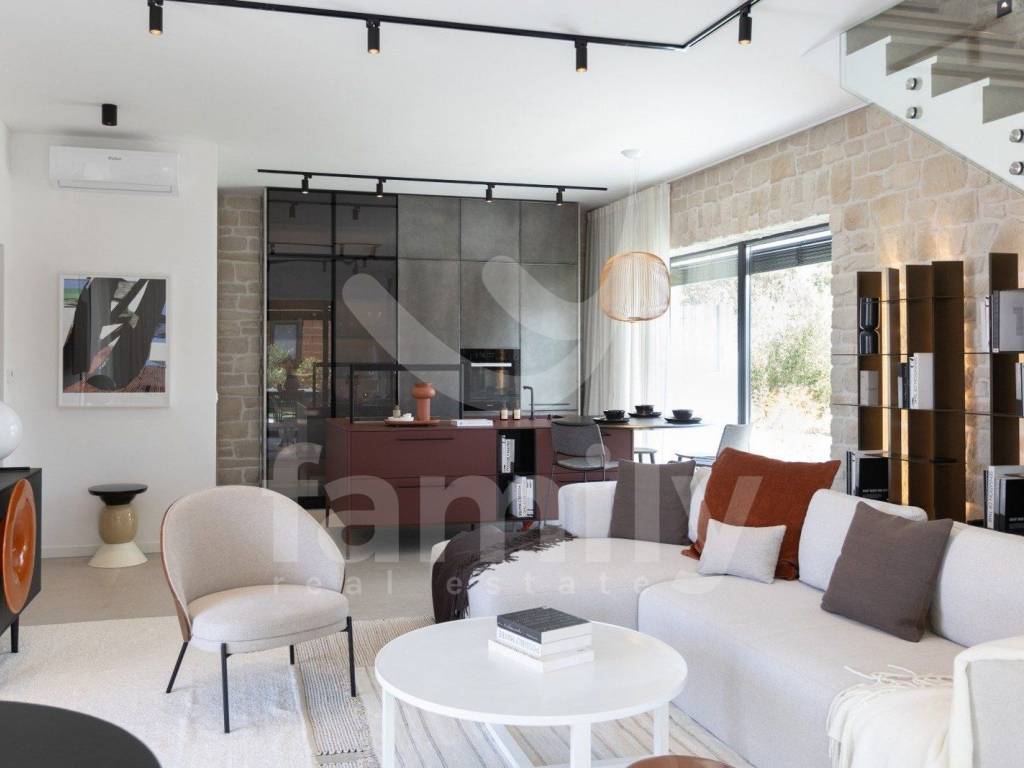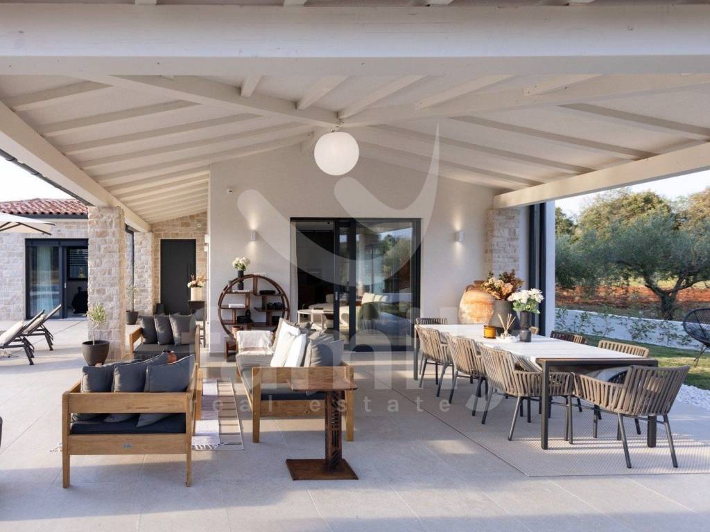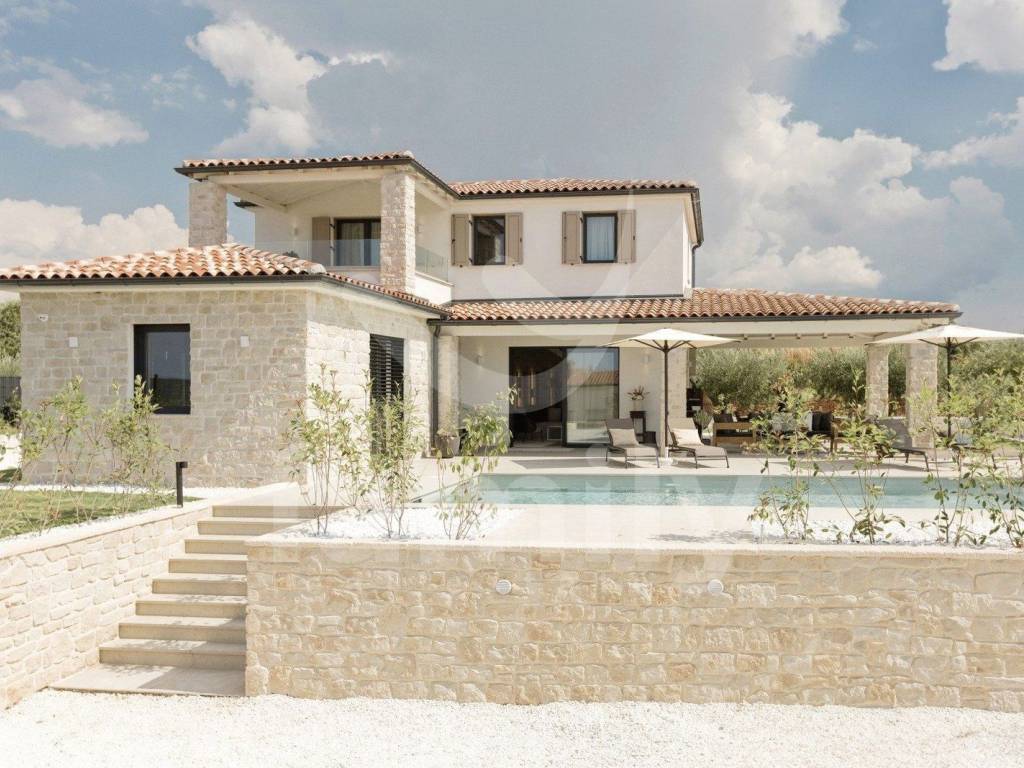 The Istrian region is considered one of the most suitable and adequate regions for living and offers many natural beauties supported by a warm Mediterranean climate and a very friendly local population, and Poreč is a true oasis of cultural heritage and historical treasures with an exceptionally developed tourism.Not far from Poreč in a quiet village is located this spacious, luxurious and authentic villa of 165 m2 on a plot of 585 m2. This prestigious property extends over two floors, on the ground floor there is a spacious open concept living room with dining room and a modern and designer kitchen in which there are built-in quality Miele household appliances, a toilet, a bedroom with a bathroom, a technical room, while on the first floor there are two more bedrooms, each with its own bathroom and one of them has an exit to a terrace with a view of the sea. The property is extremely well equipped and every detail has been taken care of. The heating and cooling system is regulated by air conditioning in each room, and it also has underfloor heating via heat pumps. The floors throughout the house are covered with high-quality Italian ceramics, while the joinery is three-layer - aluminum with PVC shutters and mosquito nets, and on the ground floor there are also roller shutters with electric lifts. The yard is meticulously maintained and there is a spacious and beautiful covered terrace that can be accessed from the living room, a sundeck, a summer kitchen, a heated pool of 40 m2. The villa is owned by the company and the price shown is without VAT.The property is noteworthy for its quiet location, extremely high quality and design, equipped with high-quality and beautifully designed furniture and content, sea views and offers the future buyer the opportunity to enjoy it in terms of luxurious and quality family life or in terms of engaging in tourist rental activities and a faster return on investment.FOR ALL OTHER INFORMATION, CALL THE NUMBER: