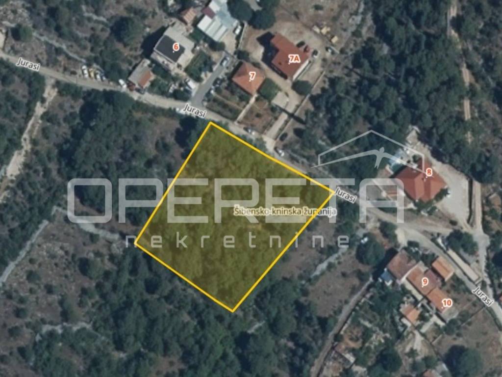 In the peaceful surroundings of Dubrava, near Šibenik, there is a spacious building plot of 3,654 m². It has a regular shape, and access is secured.