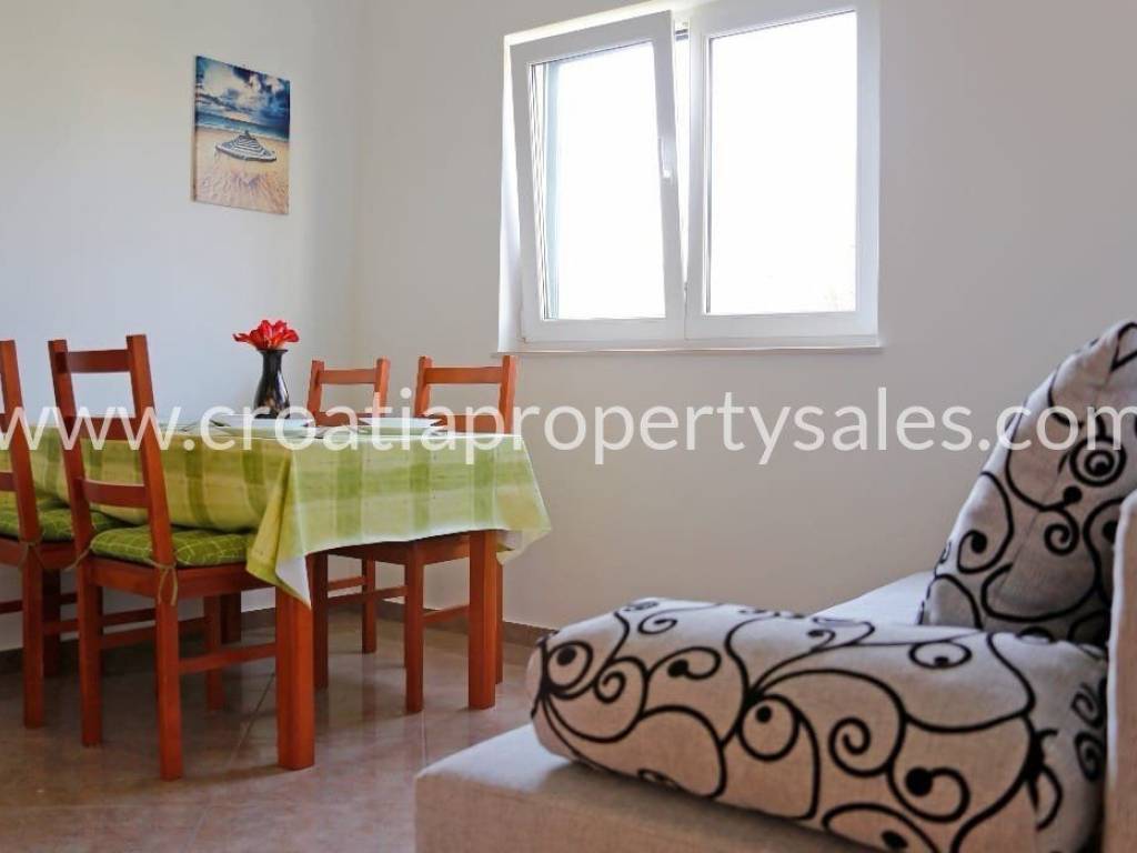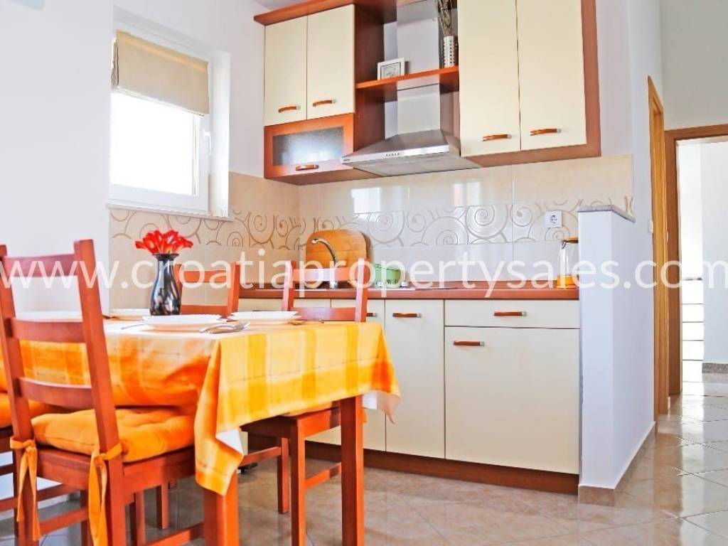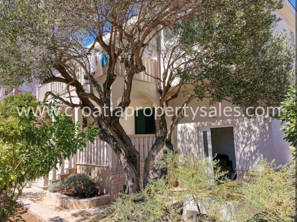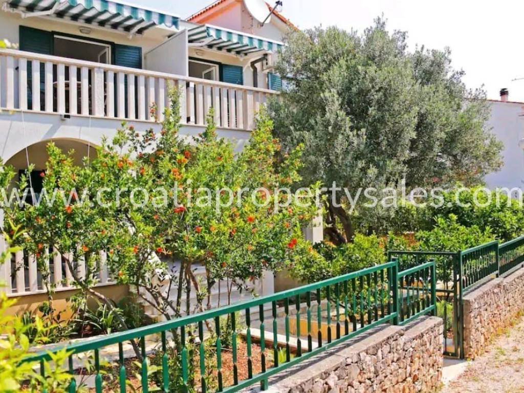 This attractive property is located in a beautiful cove, about a 10-minute drive from Rogoznica, offering a total built area of 168 m2.It consists of 4 apartments, making it an ideal investment or family property. The basement includes a small storage room, while the first floor (high ground level) features a two-bedroom apartment and a studio.The second floor consists of two one-bedroom apartments.The property sits on a 303 m2 plot, providing ample space for a fireplace, parking, and greenery.The location is very convenient, with the nearest shops, cafes, and restaurants just 1 km away, and the sea only 100 meters from the property.This property offers an excellent opportunity to enjoy a peaceful environment while being close to all essential amenities.