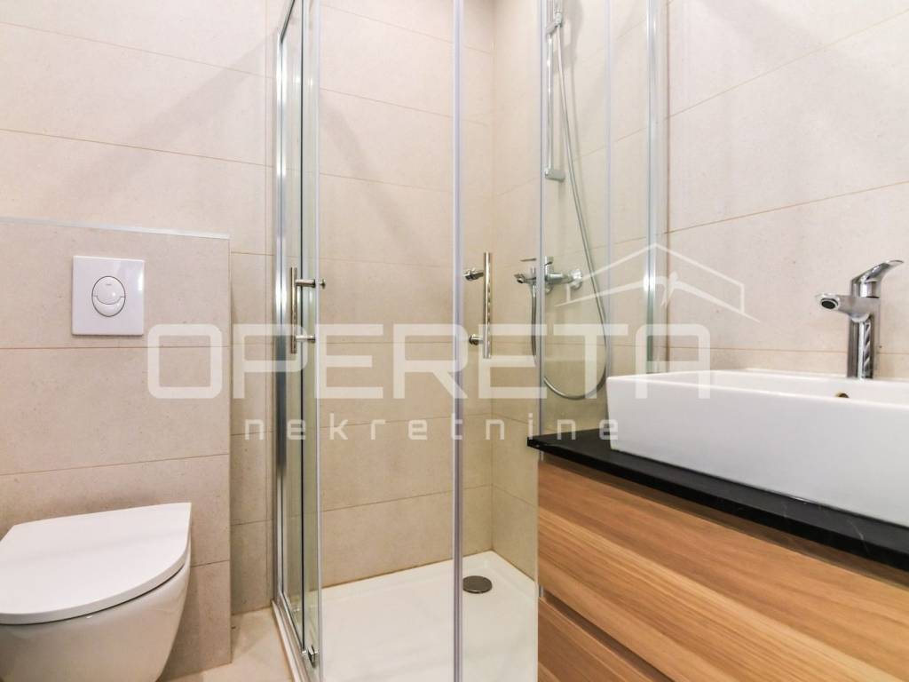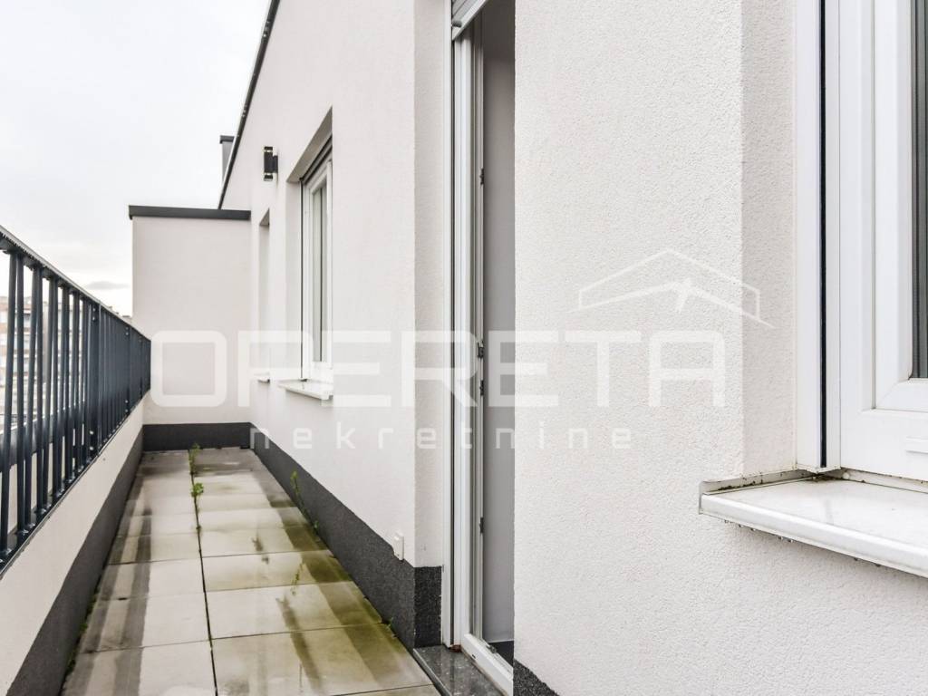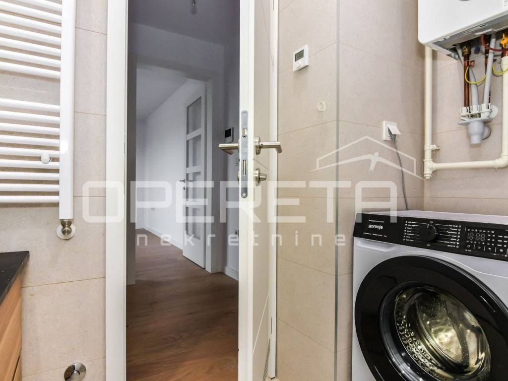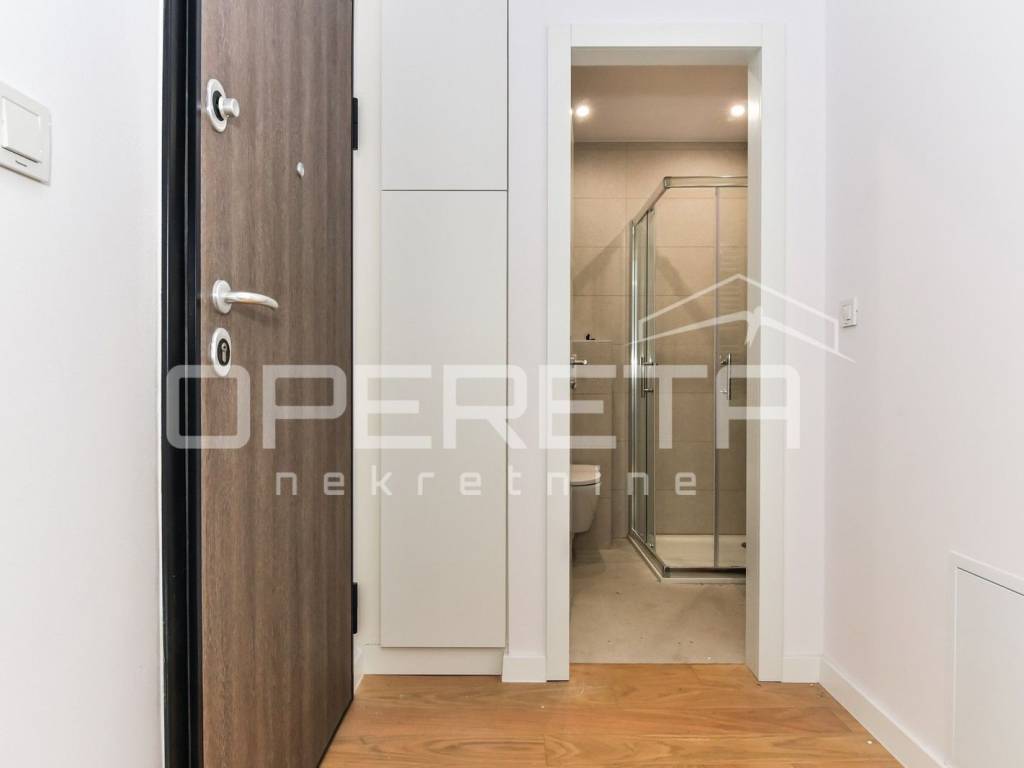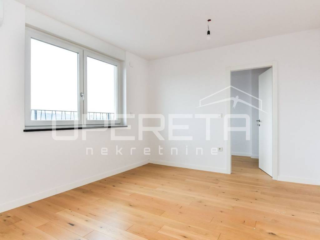 Apartment for rent in a new building on Špansko, Pavlenski put street. Two-bedroom apartment on the 5th floor of a building with an elevator consisting of a hallway, kitchen, living room and dining room, bathroom, bedroom and an open terrace with a beautiful view of Medvednica.