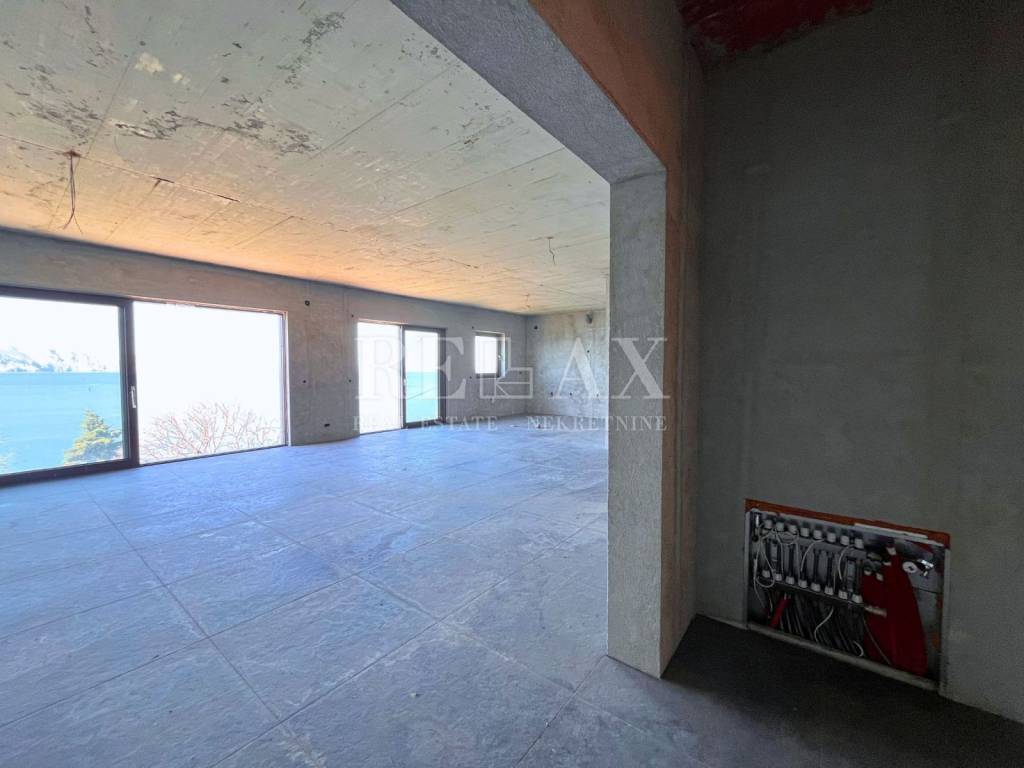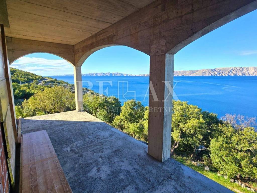 In the peaceful and picturesque village of Sibinj Krmpotski, located right by the sea, this partially constructed house offers an impressive 300 m² of living space, set on a plot of 1,950.20 m². The house consists of a high ground floor and an upper floor, and the entire property is positioned to offer a spectacular, unobstructed panoramic sea view, further enhancing its exceptional value.