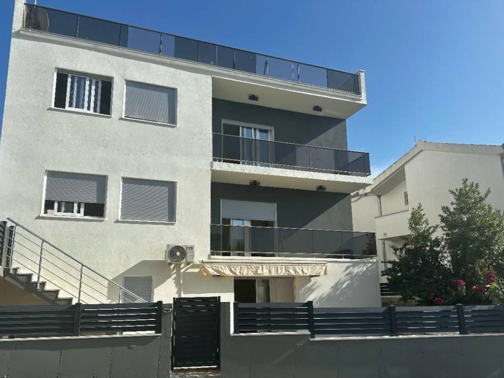 Located in the immediate vicinity of the historic town of Trogir, this elegant and spacious house offers the perfect blend of luxury, comfort and Mediterranean charm. With a total living area of 195 m² and a plot of 130 m², the property is spread over three floors, providing an ideal space for a comfortable life, vacation or profitable tourist rental. The ground floor of the house offers an extremely functional layout. The bright and spacious living room is connected to the modern kitchen and dining room, creating a pleasant atmosphere for family gatherings and relaxation. On this floor there is also an elegant bedroom, a tastefully decorated bathroom and a spacious garden terrace surrounded by Mediterranean plants, perfect for morning coffee or evening enjoyment with a light breeze from the sea. On the second floor there is another spacious living room with a modern kitchen and dining room, two spacious and bright bedrooms and two luxuriously equipped bathrooms. This floor also has a spacious terrace with a mesmerizing view of the crystal clear sea, providing a truly Mediterranean experience. The third floor consists of one fully equipped apartment, with a kitchen and dining room, an elegant living room, two modern bathrooms and comfortable bedrooms. The apartment has its own terraces with a fascinating view of the endless open sea. At the top of the house is a spacious terrace of 65 m², which is a real oasis of peace and privacy. This terrace offers unlimited possibilities for additional facilities such as installing a massage tub, summer kitchen or barbecue, making it an ideal place for socializing and enjoying spectacular sunsets. This beautiful property is equipped with numerous amenities that ensure maximum comfort and luxury. Air-conditioned spaces guarantee a pleasant temperature throughout the year, while the private pool provides real refreshment on hot summer days. A private parking space ensures safety and convenience, and the barbecue in the yard is ideal for enjoying the preparation of Dalmatian specialties. The house is located in a quiet environment, but in close proximity to all necessary amenities – shops, restaurants, post office and airport, which ensures the perfect balance between privacy and convenience. Due to its exceptional location, proximity to the sea and luxurious amenities, this property represents a perfect opportunity for tourist rental, but also for a comfortable family life. Its Mediterranean style, spaciousness and spectacular sea view make it a true gem on the Adriatic coast. This is a home that combines luxury, comfort and beauty, providing a unique experience of Mediterranean life!