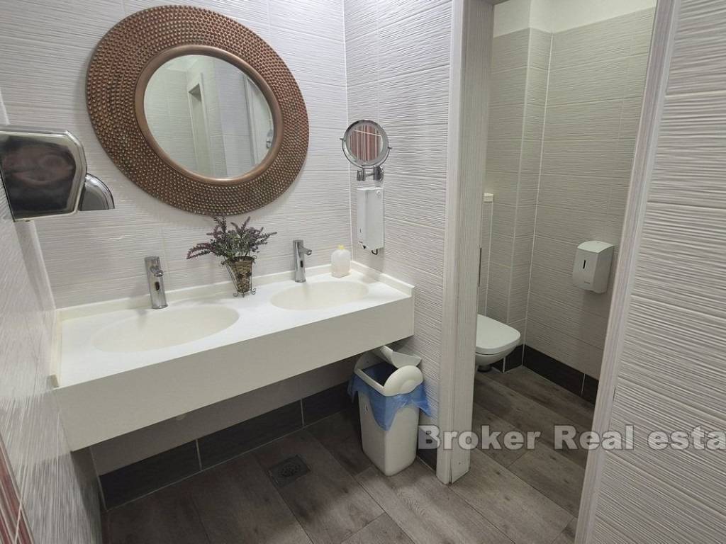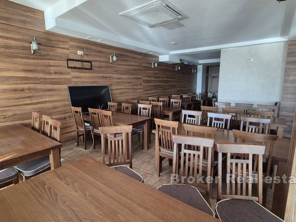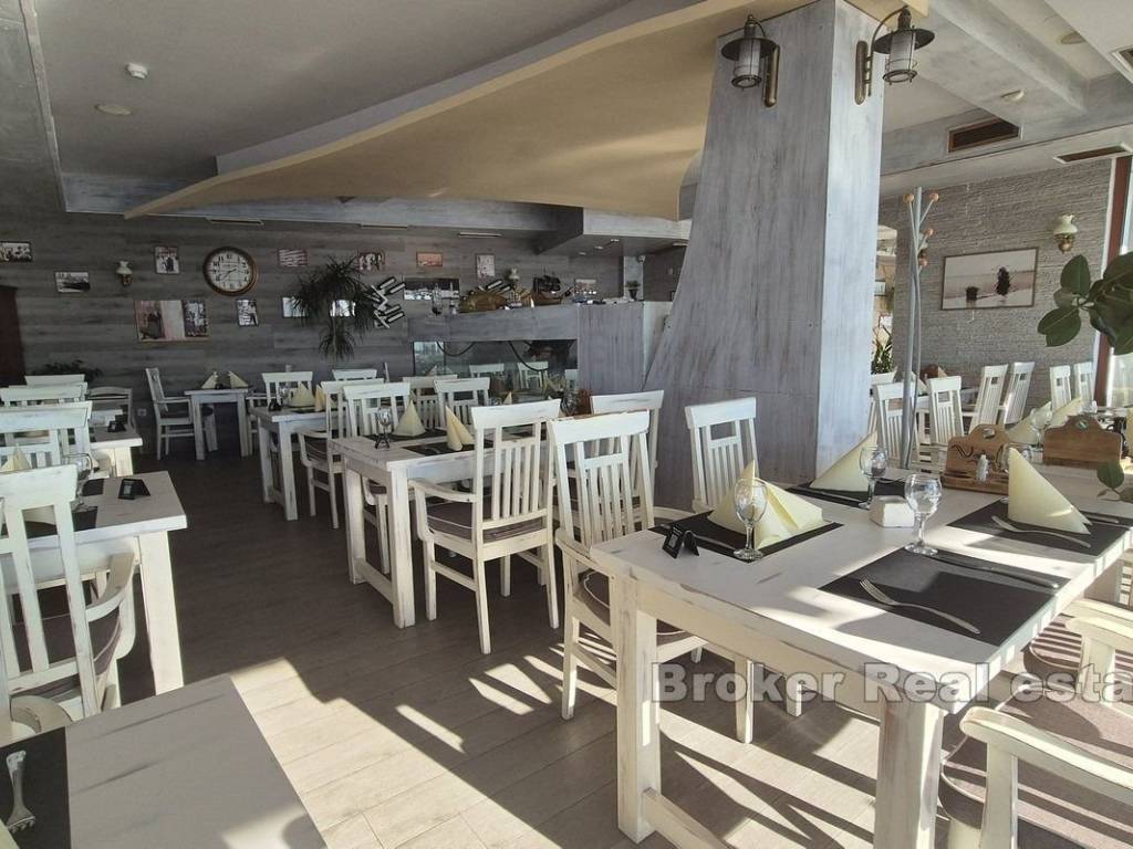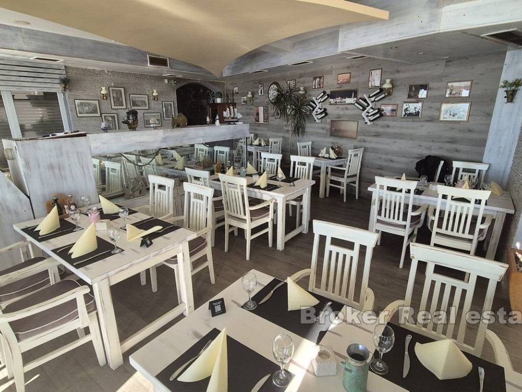 Top-positioned renowned restaurant, for lease, located on the south side of the city, in the first row by the sea. The restaurant has a total area of 363 m2, and consists of 290 m2 of the interior where there is an open-type guest room of 115 m2, with a total of 28 tables; separate guest rooms of 95 m2; an area with a bar, a spacious kitchen with a large pizza oven, storage and a cold room of a total area of 80 m2; 4 toilets; and an outdoor covered terrace of 73 m2 with a total of 14 tables. The separate room is also a special space for celebrations and other separate events separate from the restaurant. This is a renowned restaurant with a long tradition, fully furnished and equipped and immediately ready for operation. The very position by the sea provides an exceptional view, and the space itself is designed and decorated in a Mediterranean style to provide guests with an authentic stay experience. Considering the professional side of the building, the owners only want a long-term lease with a fixed price with a tenant who has experience working in the restaurant industry. It is a rare and high-quality restaurant option whose potential is easily recognizable at first glance.