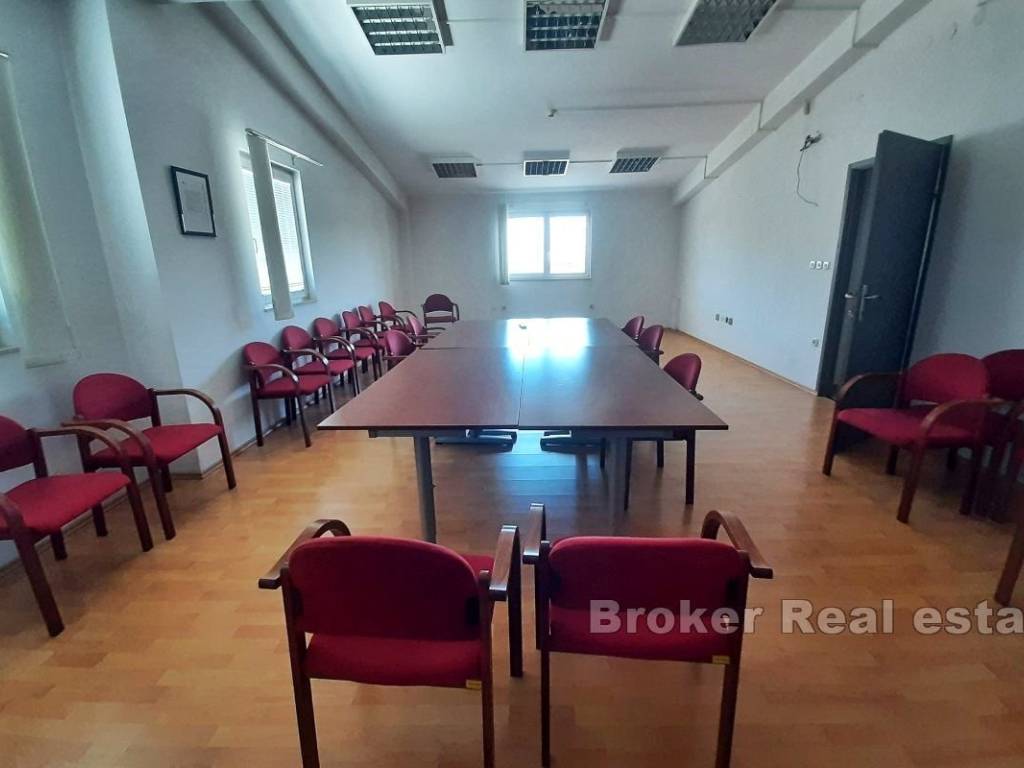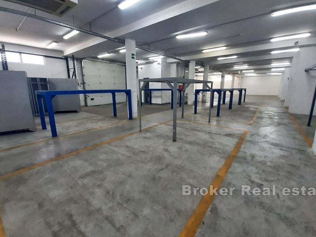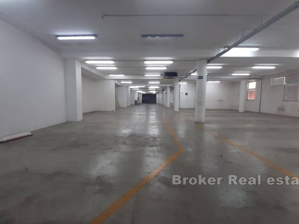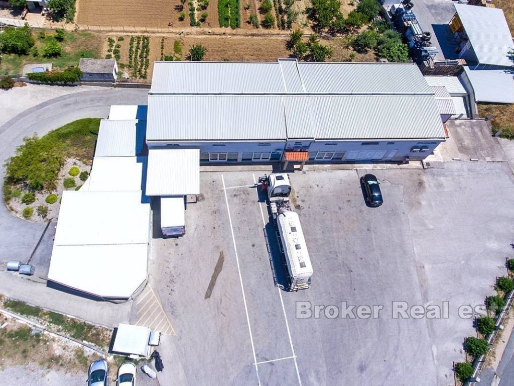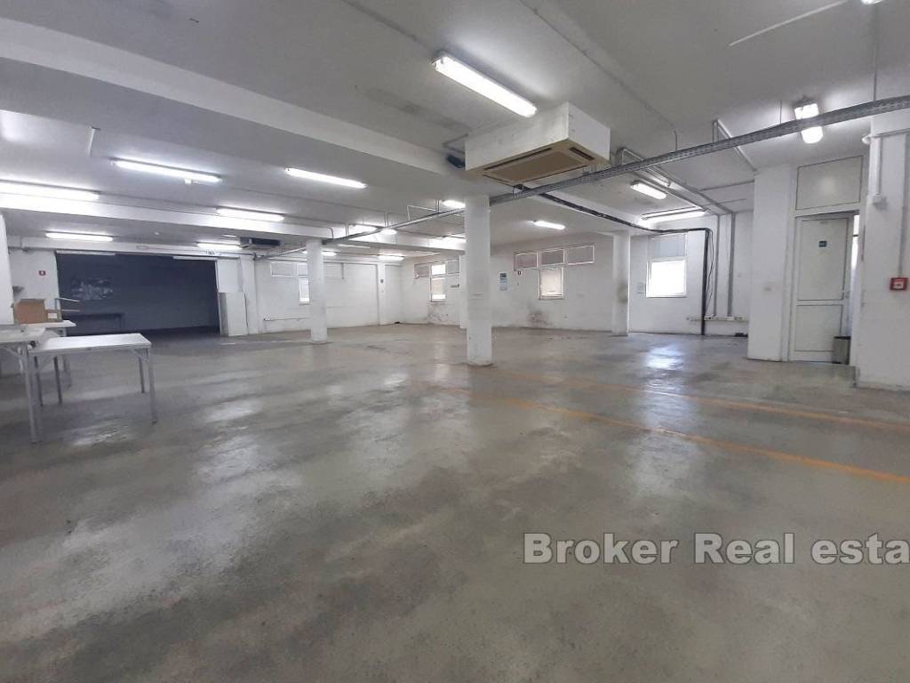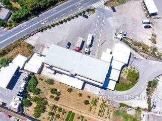 Production – warehouse business space, for lease, located near Split, with a total area of 1720 m2. The space consists of 4 floors, each with a separate external entrance, and interconnected by internal stairs. Floor -2 has a total area of 550 m2, with a height of 3.5 m2. Floor -1 has a total area of 600 m2, a height of 3 meters, with a cooling chamber of 16 m2 Part of floor 0 has a floor area of 120 m2, a height of 3 meters, ideal for sales premise. Floor +1 has a total area of 450 m2, and represents the office part of the business premises. Each floor has an orderly access for bigger vehicles. The outer part of the space refers to approximately 1000 m2, which is used for parking and manipulative space. The space represents an excellent and rare opportunity, considering the given area and potential of the space, for business development near the city of Split. The location is well connected to the main city roads and with the highway entrance. The space is rented in its entirety.
