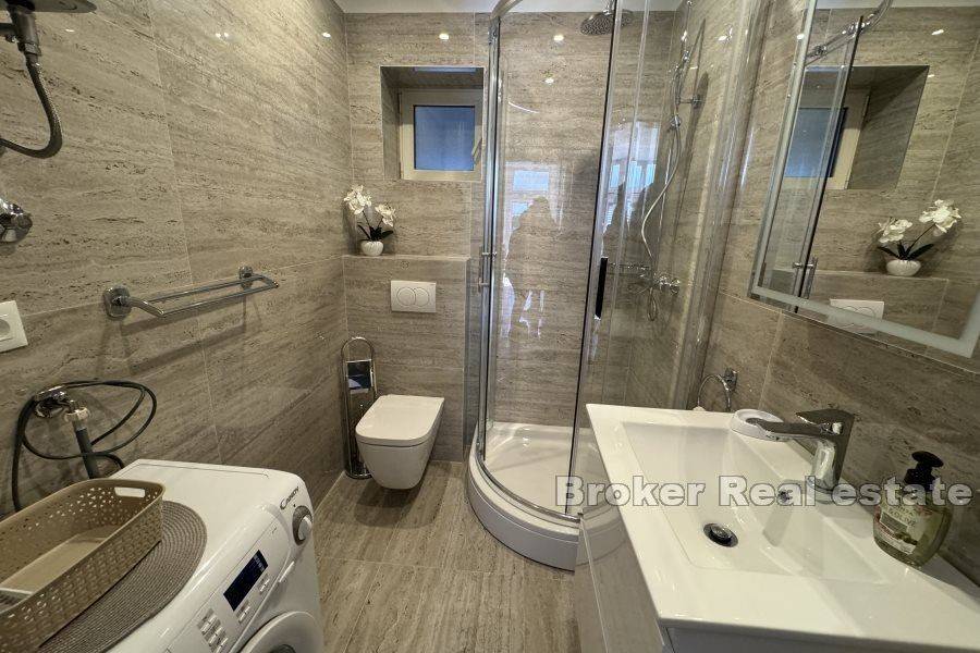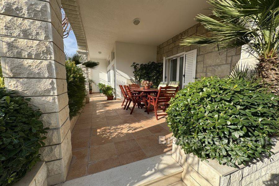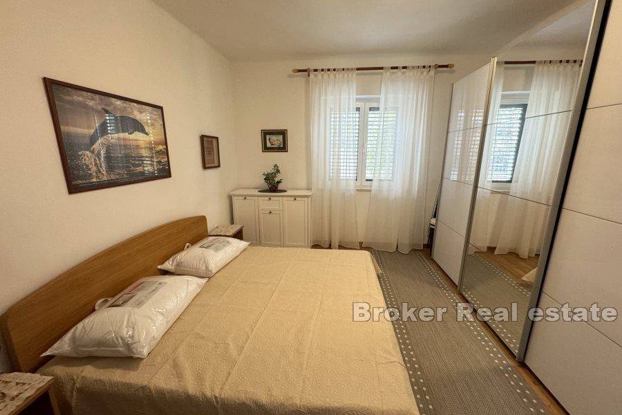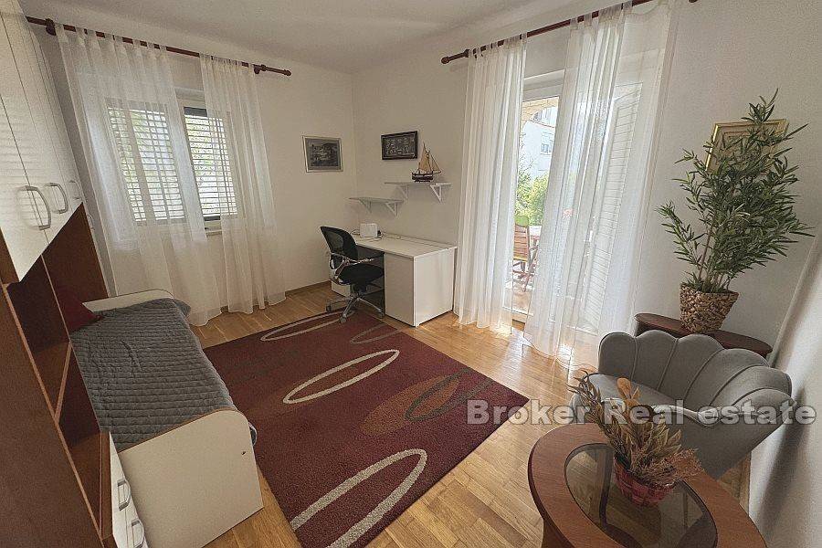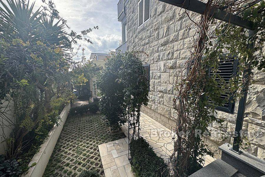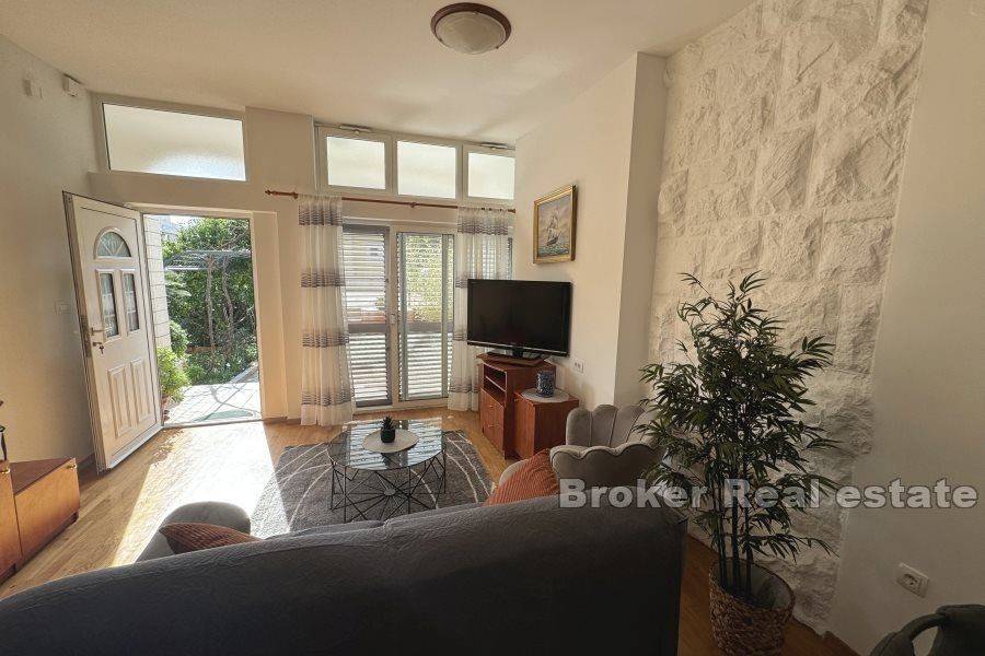 Charming apartment on the ground floor of a private house, Meje. The apartment consists of two bedrooms, newly renovated bathroom equipped with underfloor heating, kitchen, dining room and living room, and an additional library room. In front of the apartment there is a beautiful green oasis, a terrace with a garden enriched with Mediterranean herbs and citrus fruits, and a large barbecue. The apartment has a private entrance. The price of the apartment includes a garage or outdoor parking space, upon agreement. It is located in a quiet neighborhood, very close to the famous beaches of Marjan. Just a few minutes’ walk from Diocletian’s Palace and the waterfront. The apartment is exclusively for long-term rent, minimum 1 year. All utilities are paid by the tenant.