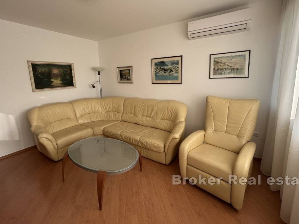 Apartment for rent on the 3rd floor of a residential building for a long-term period in the Bol district, completely equipped. The apartment has an area of 74m2, orientation E-W, and consists of 2 bedrooms, bathroom, a kitchen with a dining room and a spacious living room. The apartment also has a loggia with a view of the city. The apartment is equipped with air conditioner and wall heaters as well as with a safe. There are non-private parking spaces in front of and around the building. The location is great because there is a school, kindergarten, shops and a pharmacy nearby. * Considering the volatility and dynamics of renting, the ad is informative and does not necessarily mean that this apartment is available for rent. For current information, please contact us.