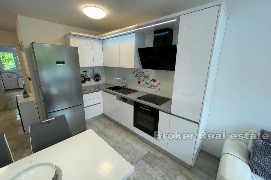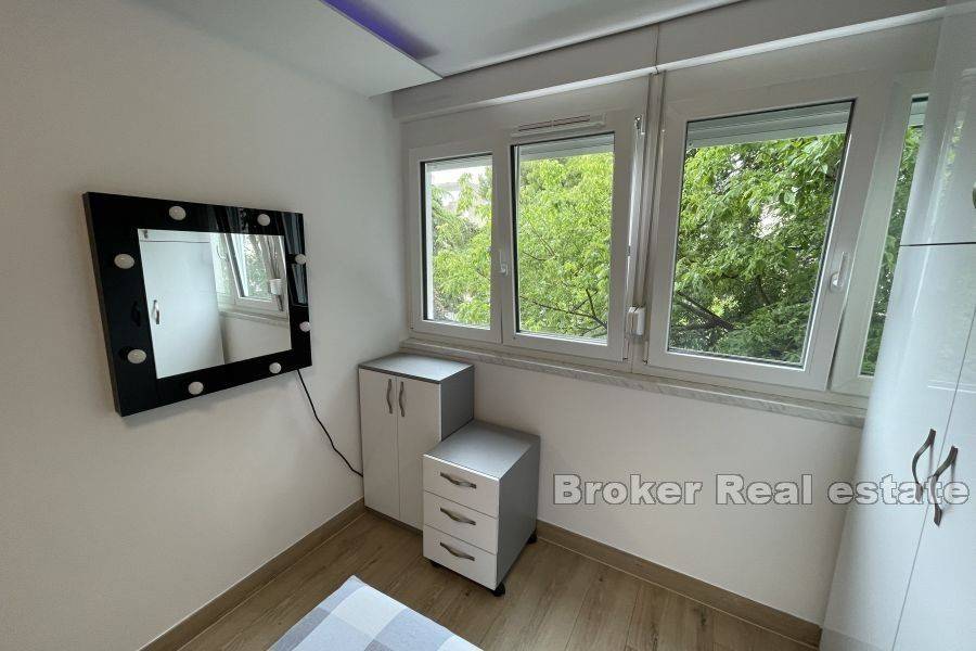 Renovated, newly renovated two bedroom apartment in a residential building on the second floor without an elevator. The apartment consists of a fully equipped kitchen with all appliances, a dining room and a living room located in the south, and two comfortable bedrooms in the north, a hallway, a bathroom and a small balcony. The entire apartment has underfloor heating, and air conditioning is used for cooling. The apartment is rented long-term. No pets. * Considering the volatility and dynamics of renting, the ad is informative and does not necessarily mean that this apartment is available for rent. For current information, please contact us.