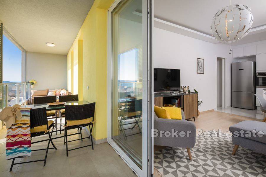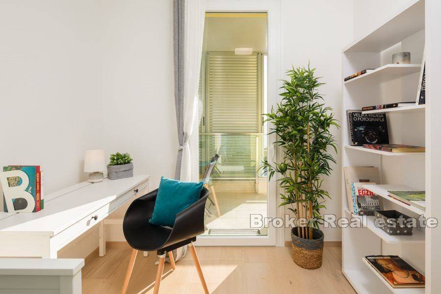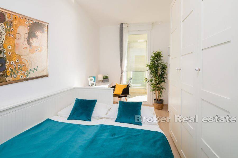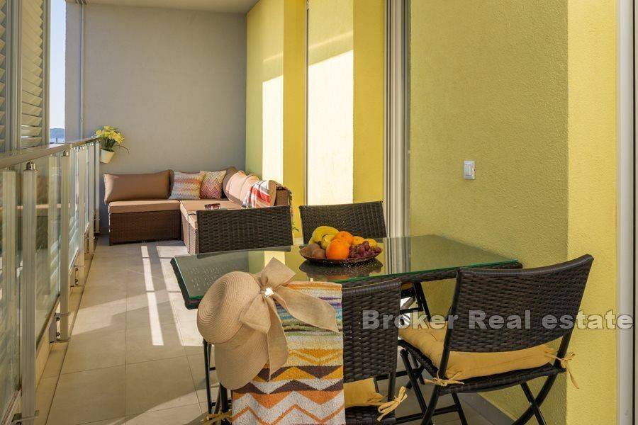 New building on Trstenik, two bedroom apartment of south orientation, living area 68m2. It consists of an entrance hall, two bedrooms, a bathroom, a living room with a dining table, kitchen and a large south loggia. The apartment is very well equipped and furnished. The apartment also has a garage space in the building. It is rented for a longer period. * Considering the volatility and dynamics of renting, the ad is informative and does not necessarily mean that this apartment is available for rent. For current information, please contact us.