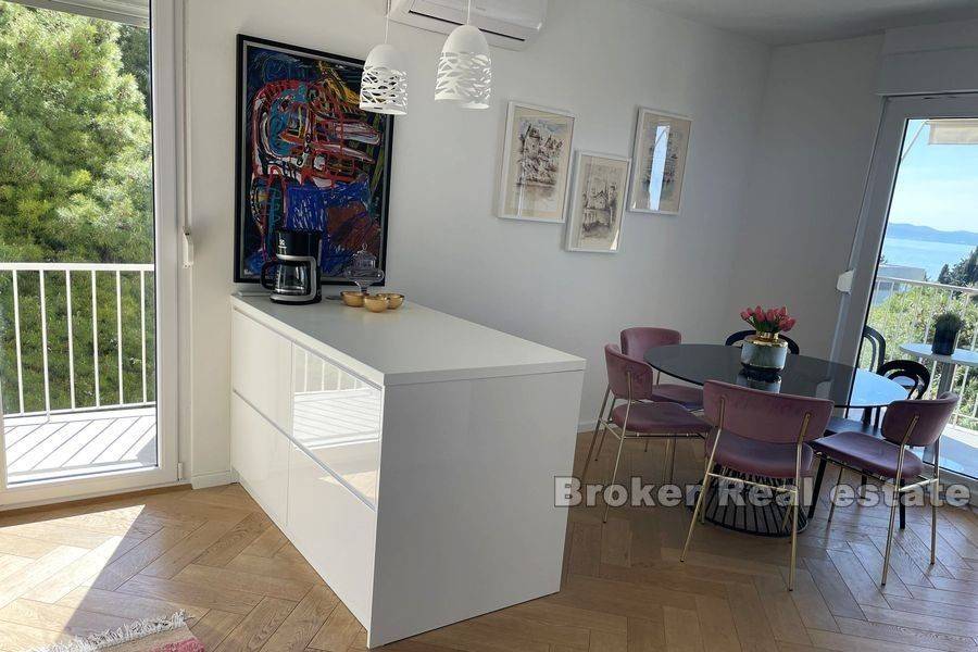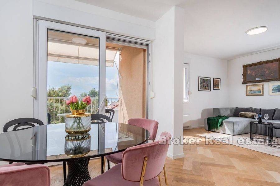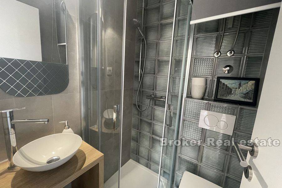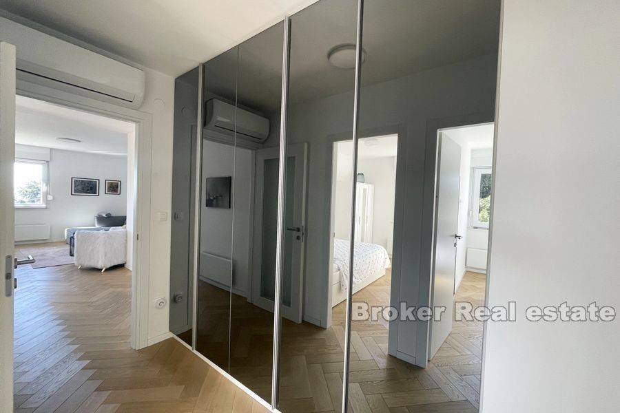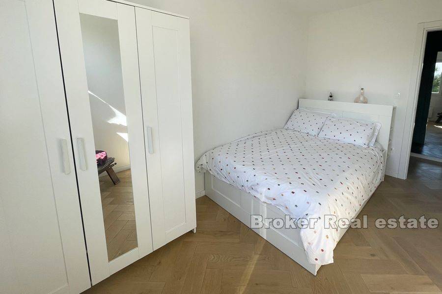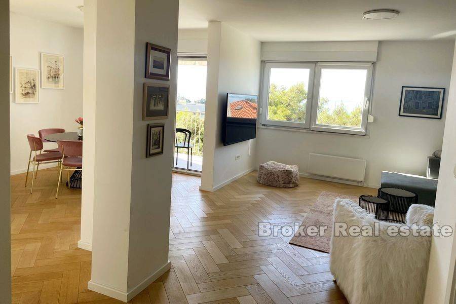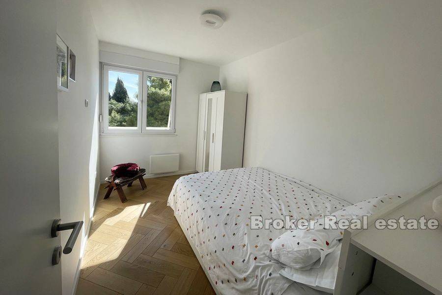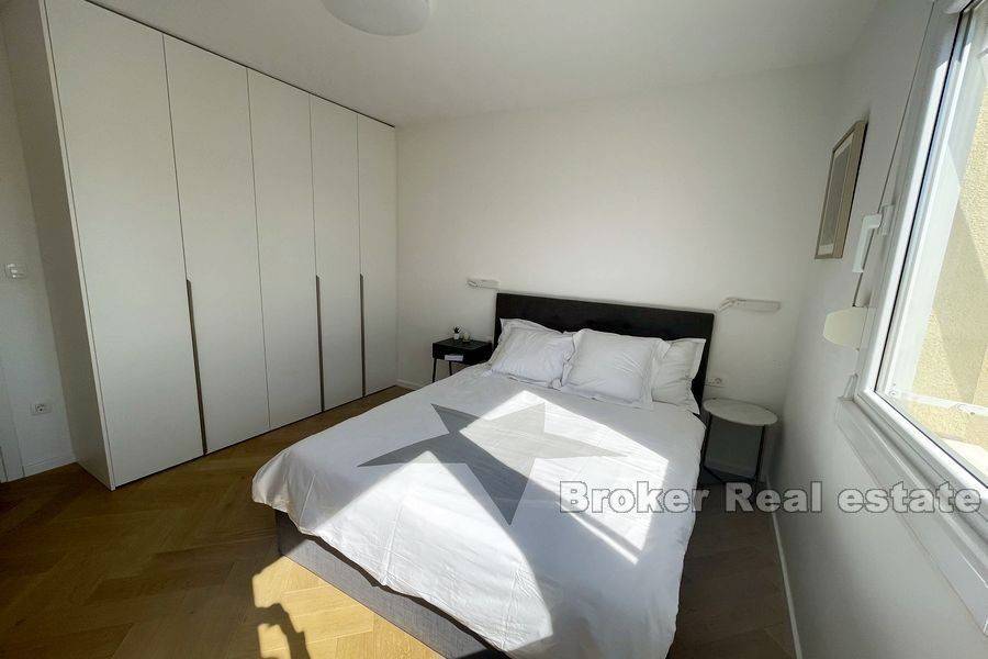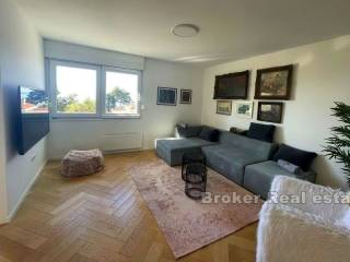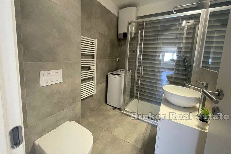 Comfortable, modernly equipped two bedroom apartment in Meje, for rent. The apartment is located on the 2nd floor of a residential building, fully equipped and is south oriented. It consists of a hallway, two spacious bedrooms, two bathrooms and a south-facing living area consisting of a kitchen with dining area and living room. The apartment also has an exit from the kitchen to the balcony and a loggia. The building has its own parking lot but the same can also be found near the building. It is an excellent choice due to the proximity of all facilities (school, cafe, pharmacy, shop) and the quality of housing in this object. * Considering the volatility and dynamics of renting, the ad is informative and does not necessarily mean that this apartment is available for rent. For current information, please contact us.