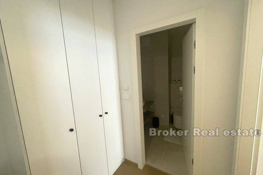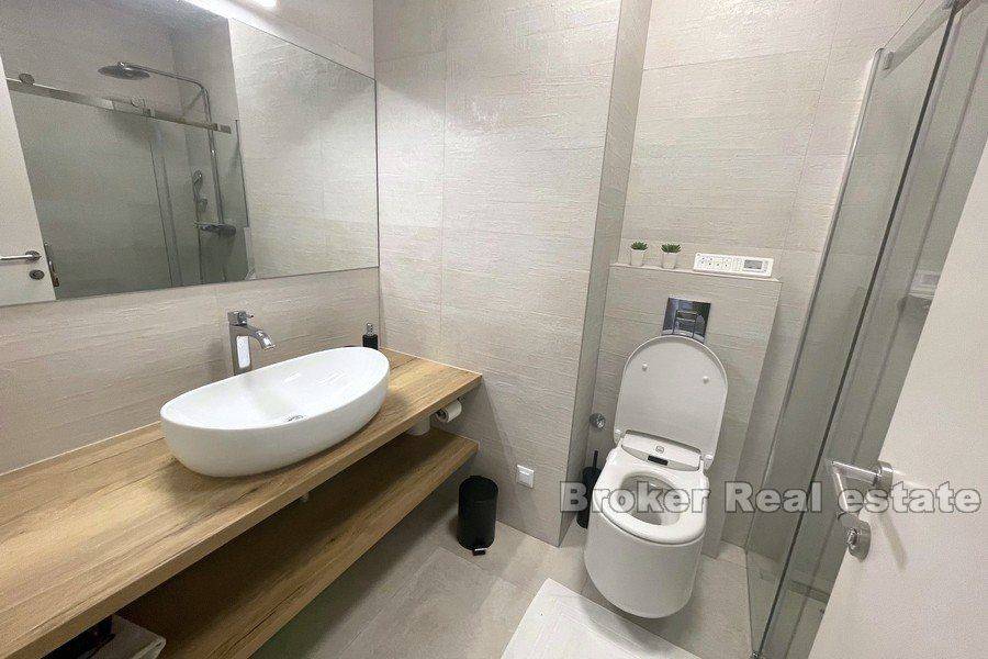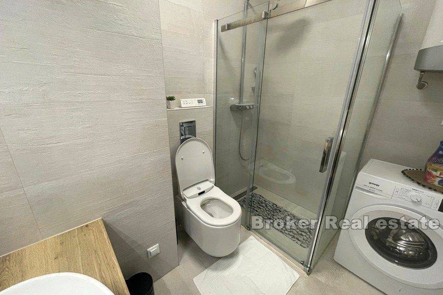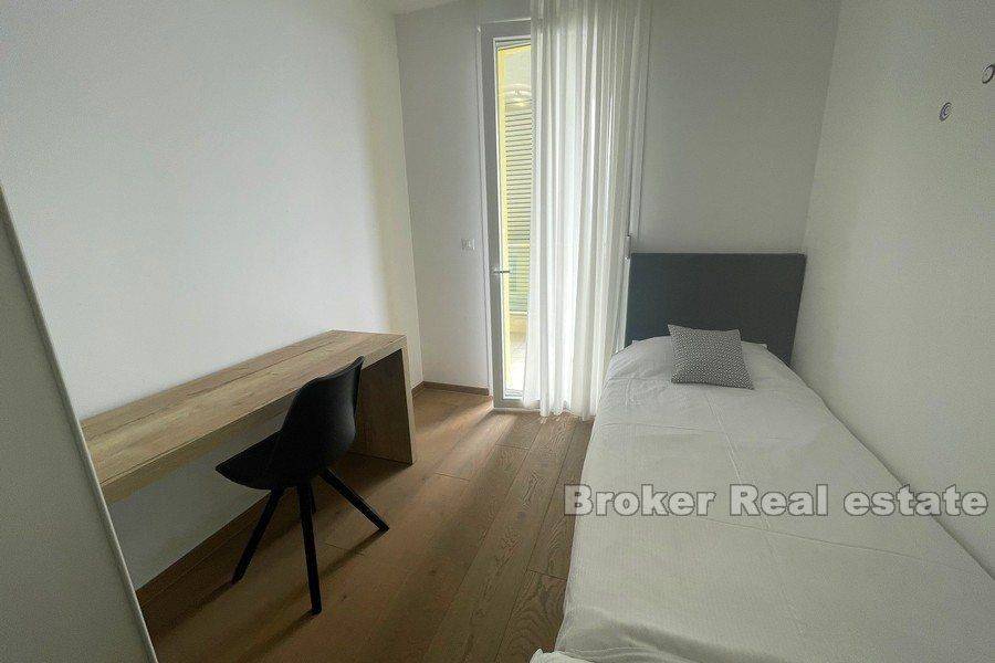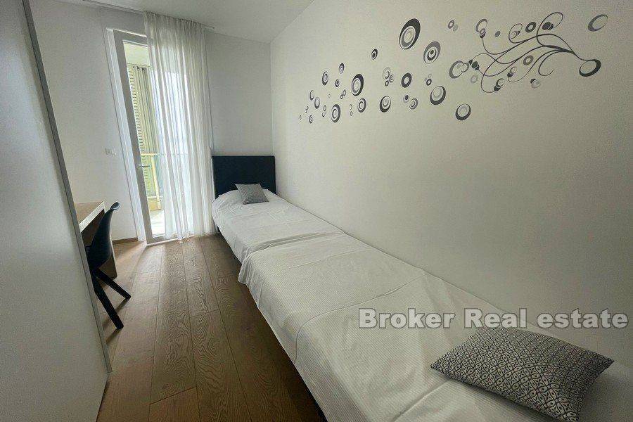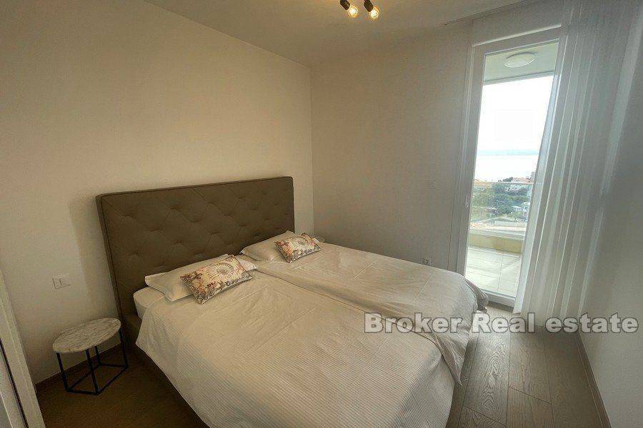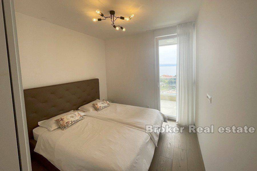 Modern, newly renovated apartment on the seventh floor of a new building with an elevator. It is located in Split, district Trstenik. South orientation with open sea view. The apartment consists of two bedrooms, bathroom, spacious living room with kitchen and dining room and a large loggia of 16m2. Each room, as well as the living room has direct access to the loggia. The apartment is fully furnished and equipped (washing machine and dishes, cutlery). Each room has air conditioning and underfloor heating. There is a possibility of additional payment for the garage space. It is rented for a long term, a minimum of one year. * Considering the volatility and dynamics of renting, the ad is informative and does not necessarily mean that this apartment is available for rent. For current information, please contact us.