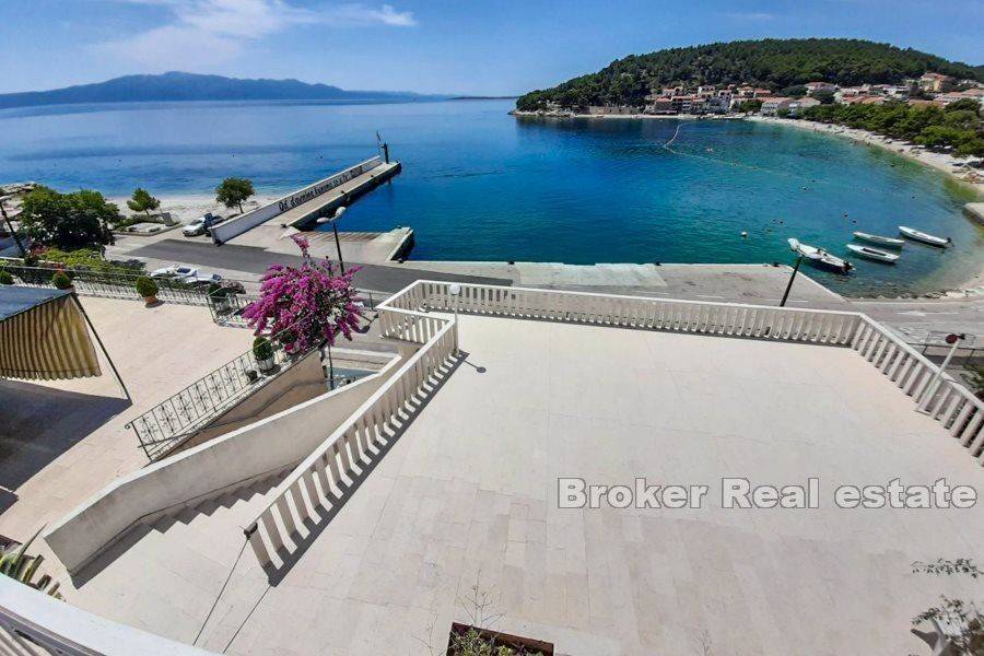 Hotel, for rent, located on the Makarska Riviera in the picturesque Dalmatian town of Drvenik, in an excellent position in the first row to the sea, on a plot of 455 m2. With a total gross area of 900 m2, the hotel consists of a basement where the restaurant is located (gross area of 126 m2 with a large terrace above), ground floor and three floors. Given the current interior design, the interior consists of a total of 6 apartment units and 14 rooms with bathrooms, or a total of 55 beds. The building was built in stages so that it was completed in 2002, while the top floor was built in 2008. Positioned in a very good strategic location above the ferry port that connects Drvenik with the island of Hvar (Sucuraj), and near the main beach and all additional facilities, the hotel is perfectly recognizable to every visitor to this charming Dalmatian place located below the slopes of mountain Biokovo and easy to make a brand out of it and position it on the market considering a really perfect location. Elegant west-facing, the hotel is bathed in sunshine all day and most accommodation units have open sea views and a balcony. The facility has been operating at reduced capacity in recent years, ie it has not reached the optimal level, but it was still properly maintained so that it is still in satisfactory condition, although it will certainly need partial renovation, given the requirements of modern hotel business. The restaurant in the basement of the building requires a complete renovation in agreement with the owner. All in all, a very high quality and serious offer that will surely interest a true investor and a sincere lover of the beautiful Makarska Riviera.