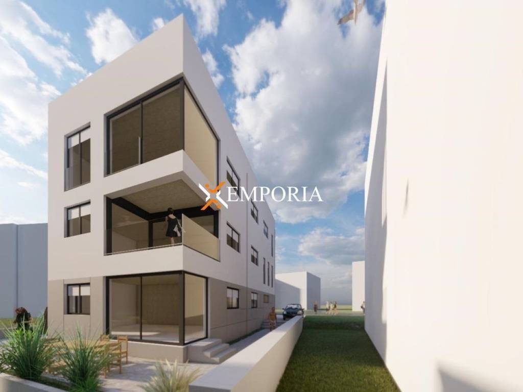 A ground floor apartment is for sale in a new development located in the attractive area of Plovanija, Zadar. The apartment includes a private garden with a terrace and two separate parking spaces. The distance from the sea is 1,4 km, and from the city center of Zadar, 1,8 km.The layout consists of a hallway, bedroom, bathroom, kitchen with dining area and living room. The net usable interior area is 57,40 m².Additionally, the apartment includes a garden of approximately 40 m² and two separate outdoor parking spaces. Part of the garden will be used as a terrace belonging to the apartment. The total net usable area including all associated parts is 66,40 m².
