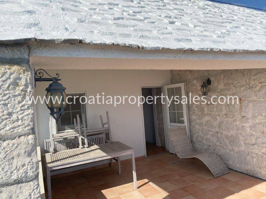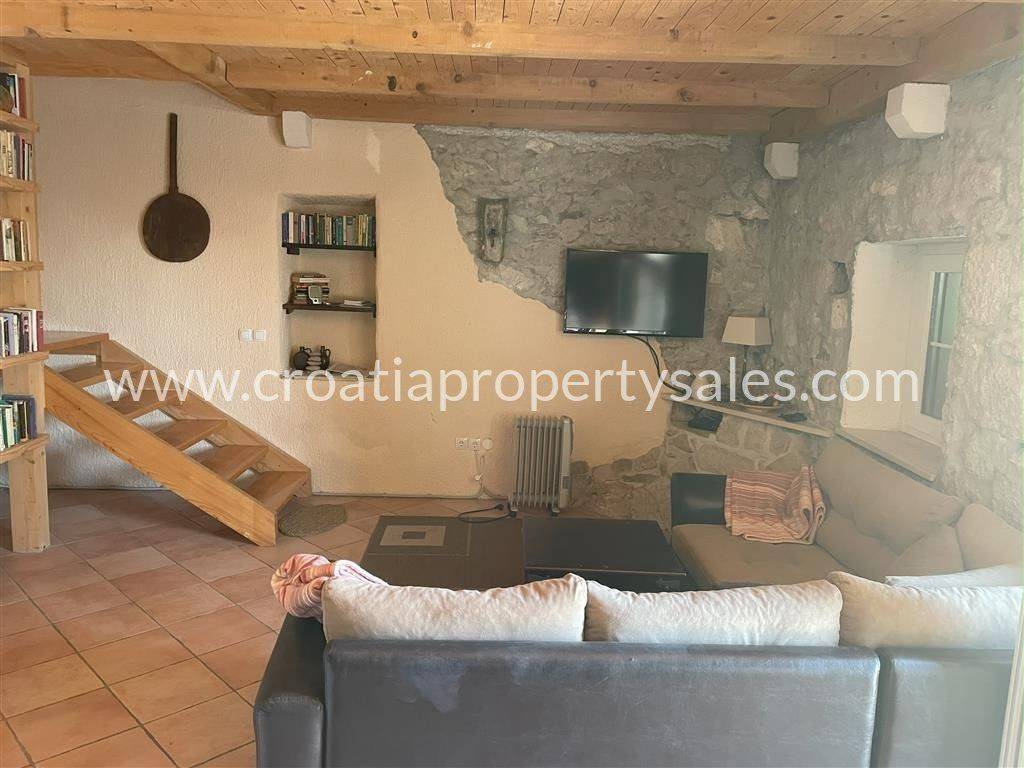 Authentic Dalmatian stone house with panoramic views.We are pleased to offer for sale a beautiful family stone house located in a small village on the Omiš Riviera.The house consists of a ground floor and an upper floor and has a total of 130 m2 of living space.It consists of a kitchen, dining room and living room with fireplace, two bathrooms, two bedrooms, a garage and a storage room.There is a possibility of building a swimming pool on the land.Due to its location, the house users can enjoy peace, quiet and a beautiful panoramic view that is rarely seen.