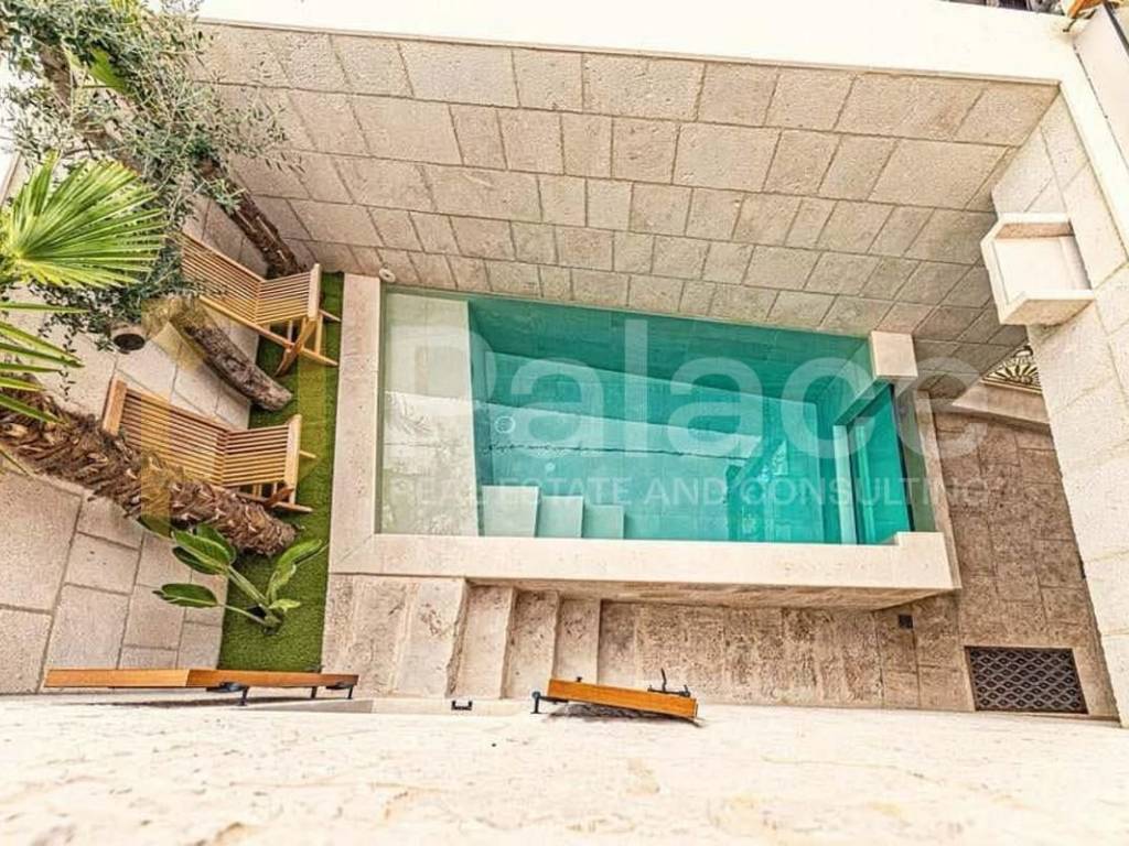 This stone beauty of Mediterranean style construction has recently been completely renovated and adapted, representing a blend of old times and the spirit of former Dalmatia with a modern way of living. The villa has a total living area of 125 m² and spreads over 2 floors. In the courtyard in front of the house, there is a beautiful glass pool with a sunbathing area and a relaxation space.