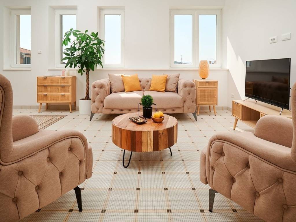 We are selling an exceptionally renovated three-bedroom apartment of 105 m², located on the third floor of a small residential building in one of the most sought-after locations in Split – Bačvice. Just a few minutes walk from the sea and the historic center, the apartment offers a combination of classic city architecture and a modern interior. It consists of three bedrooms, a spacious open-concept kitchen with dining area and living room, a bathroom with walk-in shower and double sink and a balcony overlooking the sea, the west coast and the old town. The space is bright, functional and clearly organized. The furniture is mostly custom-made and blends into the interior of simple lines and neutral tones. The apartment was completely renovated in 2024. The renovation included a complete replacement of the installations, the construction of a new concrete mezzanine floor, an underfloor heating system, air conditioning, carpentry and security doors. The works were carried out using high-quality materials and carefully designed details. It is being sold fully furnished and equipped, ready to move in without the need for additional investments. Thanks to its exceptional city location, quality of construction and character of the space, this property represents a reliable value suitable for quality city life, occasional stay or as a long-term investment in the real estate market.