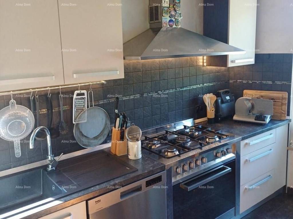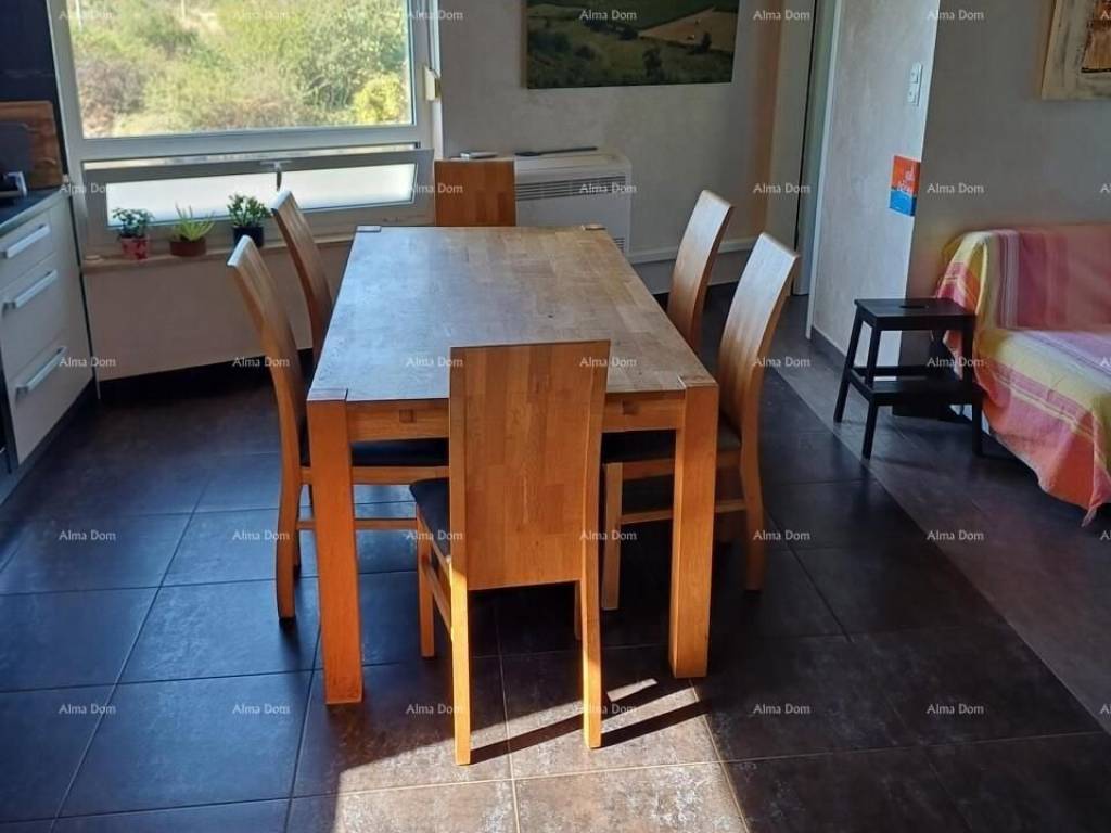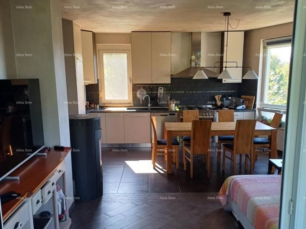An apartment of 89 m2 is for sale, Buje. The living area is 69 m2, and there is also the owner"s garage of 20 m2. The apartment consists of: hallway, 2 separate bathrooms, 2 bedrooms, kitchen with dining room and living room, covered terrace and balcony.Heating and cooling is provided by air conditioners - 2 outdoor units and 4 indoor units in each room - one Mitsubishi. There is also a wood stove in the living room. The windows are aluminum, there are mosquito nets and shutters on all windows. The meter for electricity and water is private, of course it also has an internet connection.The facade is insulated - styrofoam.The apartment is extremely bright because it is oriented east-west. The sun shines on it all day.From the balcony you can see the Bay of Piran and a beautiful sunset.The apartment is sold furnished.For more information, see the following information:Azra+385 91 611 5706+385 98 420 885azra@almadominvest.com