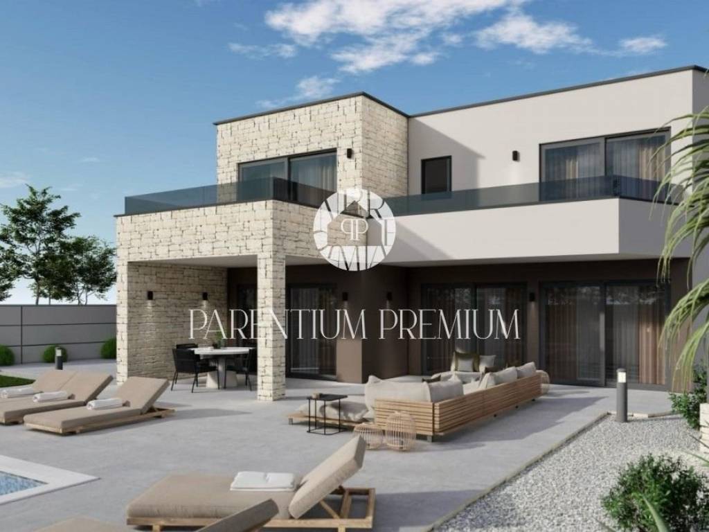 Istria, Poreč areaExclusive villa under construction for sale near Poreč.The villa is located in a small village with only a few houses and offers complete privacy and an escape from the city crowds and everyday life.The villa is located on a plot of land of 1407m2, and is spread over two floors.The ground floor has a net area of 129.75m2, consisting of an entrance hall, a toilet with a utility area, a spacious bedroom with a private bathroom, a kitchen with a dining room and a living room in an open space concept with access to a covered terrace and a sundeck where there is a 7m x 5m swimming pool.The staircase leads to the first floor with a net area of 122.53m2, where there is a hallway, three spacious bedrooms each with their own bathroom and their own terraces.The villa will have air conditioning and a fireplace, but there is a possibility of installing the first phase of underfloor heating.An auxiliary building/summer kitchen can also be built according to the buyer"s wishes.Construction began in March 2025.This property is an ideal solution for housing in a peaceful environment or as an investment for tourism purposes.