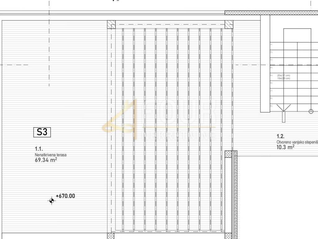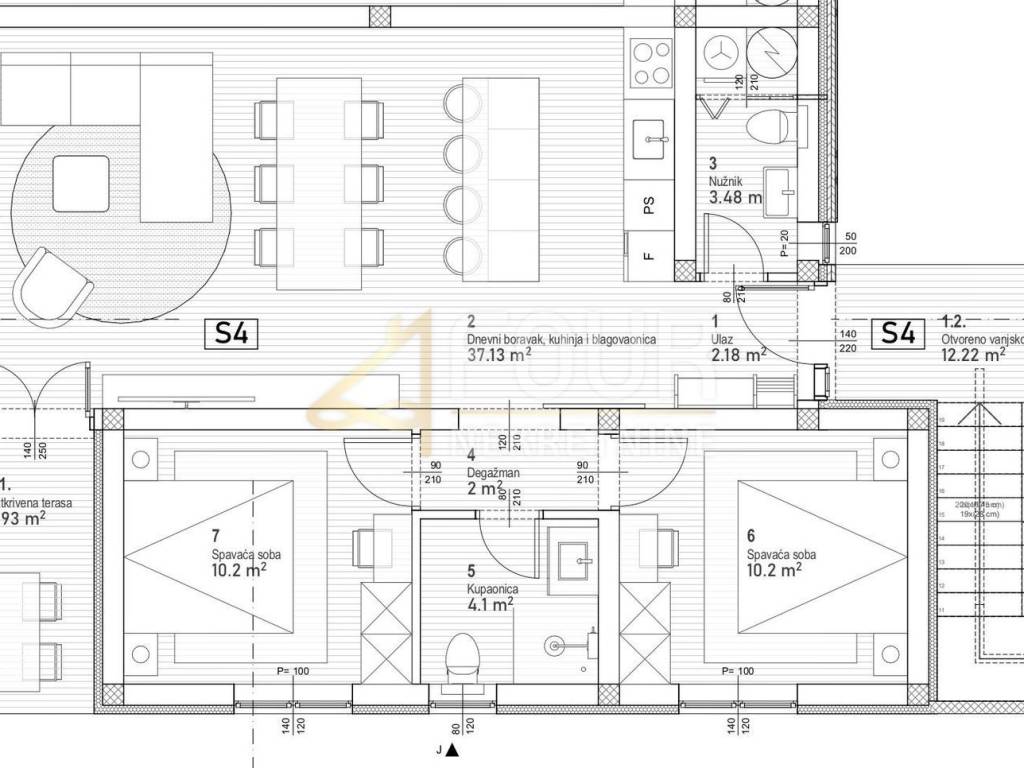 The apartment consists of two bedrooms, a spacious living room, a kitchen with a dining area, two bathrooms, a dressing room and a covered terrace, which is the perfect place to enjoy the outdoors. In addition, the apartment offers an impressive roof terrace of 69.34m2 that offers incredible views of the sea and the surrounding nature – ideal for relaxation and entertainment.