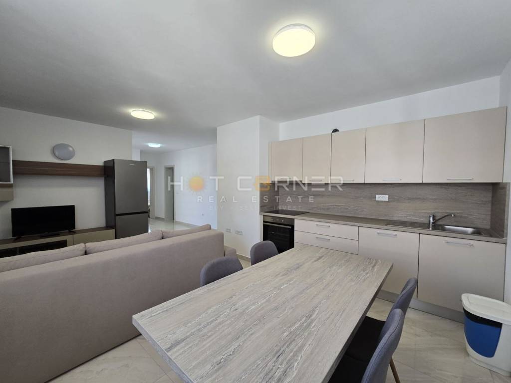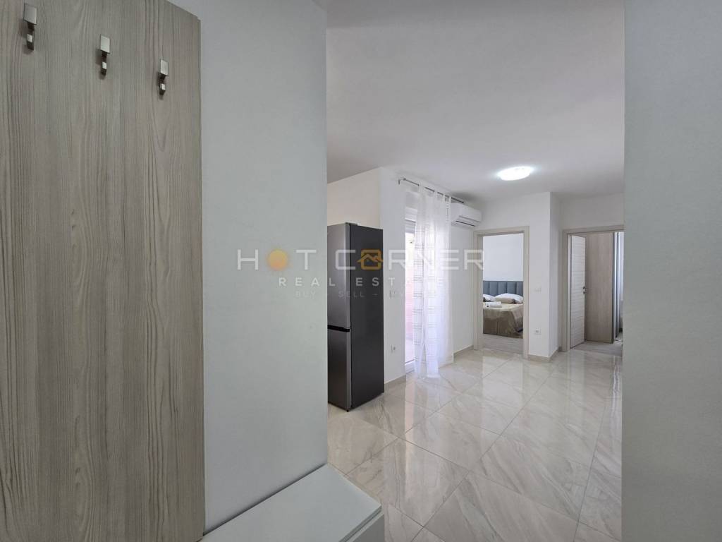 The apartment is equipped with quality interior joinery, exterior PVC joinery (Troha-dil), underfloor heating, and inverter air conditioning.