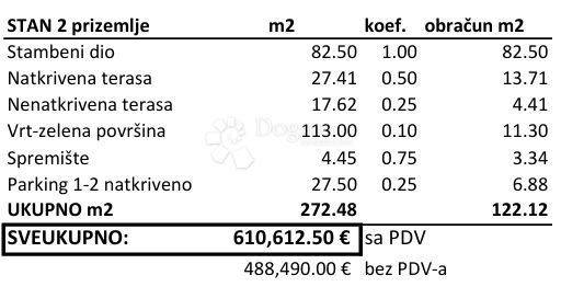 NEW ON THE MARKET! "ONCE IN A LIFETIME" EXCLUSIVE NEW BUILD IN NOVIGRAD.  Welcome!  Luxury new construction is one of the newest and highest quality building projects in Novigrad, just 800 meters away from the sea, beautiful beaches, and the historic city center. The exclusive location, architecture, and quality of execution will be in line with the latest high-rise technologies, with great attention paid to architectural design focusing on an aesthetic-functional approach, which we can literally say is a joy of life. Creative and playful solutions that will blend perfectly with nature and the surroundings guarantee warmth and naturalness of materials. Enjoy the luxurious lifestyle in the sunny town of Novigrad, where each apartment will have spacious and covered terraces making your outdoor stay even more pleasant and soothing, with unforgettable sea and city views from the 1st floor.  The construction of 2 separate buildings with a total of 14 apartments for sale is planned. Both buildings spread over 3 floors with apartment sizes ranging from 55.55 m² to 136.36 m². The apartments will be one-bedroom, two-bedroom, and three-bedroom, equipped with 1, 2, or 3 bathrooms, excellent layout, and excellent communication between rooms. Parking space for your vehicles is provided with 24 covered parking spaces (12 per building) and storage for each apartment offered. The buildings will be equipped with an elevator with an exit station on each floor, video surveillance of the entrance area, and a bicycle storage room.  LOCATION: The town of Novigrad is an ancient town that flourished during the famous Carolingian Renaissance. Located on the western coast of Istria, it is one of the most beautiful gems of the Adriatic Sea, proudly representing the tourist, economic, and cultural center of western Istria today. It provides a pleasant and safe place to stay and live throughout the year, accompanied by many amenities for quality urban life in the most desirable part of the city.  PROJECT TECHNICAL CHARACTERISTICS:  High energy certificate A+: ETICS facade system combined with glass wool, thermal insulation of at least 10 cm outside, floor heating and cooling system through DAIKIN multisplit system of indoor and outdoor units, preparation for fireplace and underfloor heating throughout the apartment, circulation pumps for water throughout the apartment, individual thermostats and temperature control for each room, remote control of heating and cooling via smartphone, air conditioning units placed on the roof of the building, while ground floor apartments will be located on green areas. Natural ventilation of rooms is provided in all areas.  All apartments will be equipped with top-quality Italian LEA Nextone Ceramiche ceramics that perfectly complement any design, along with premium oak parquet, class Country, the whole story will take on its final glamorous style.  Catalano Italy 52 toilets with soft close system, Inda Village washbasin with Paffoni Light basin mixer, Paffoni Light shower mixer with rain and hand effect, and Novellini Kali 2P shower doors are installed.  Windows and panoramic glazed walls will be made of high-quality PVC/ALU profiles with double glazed IZO glass, with aluminum blinds on electric motor drive.  Storage rooms are equipped with mechanical and natural ventilation, top-quality ceramics, and plastered and painted walls with semi-dispersive paint.  Garage and parking spaces will have a main entrance ramp with an electromotor for remote control, preparation for electric vehicle chargers, video surveillance, and a video intercom.  Entrance anti-burglary and fire doors raise the level of security and ensure peace of mind.  Landscaping includes planting Mediterranean plants and trees that will elevate the entire project to a higher level of horticultural design of this beautiful Mediterranean residence for our future buyers.  Automatic irrigation system is installed for ground floor apartments and especially for all common areas of the building. Pedestrian and vehicular parts will be paved, and rainwater drainage will be carried out.  APARTMENT B-P-D  This is a two-bedroom apartment located on the ground floor, which includes a storage room of 3.40 m² and 1 covered parking space of 12.50 m², and consists of:  Entrance hallway - 6.60 m² Living area - 41.50 m² Comprising a living room, kitchen, and dining room. Bedroom 1 - 10.30 m² Bathroom 1 - 4.10 m² Bedroom 2 - 14.10 m² Bathroom 2 - 3.20 m² Storage room - 7.20 m² Covered terrace - 25.40 m² Associated garden - 88.80 m² Uncovered terrace - 17.20 m²  Apartment area without terrace and garden: 87.00 m²  The gross area of the apartment includes (residential area, uncovered terrace, covered terrace, garden, storage room, and parking space) and amounts to: 234.30 m²  IMPORTANT! The mentioned price refers to the net area with included coefficients, which amounts to: 117.93 m²  The property is purchased from a safe and reliable investor with many years of