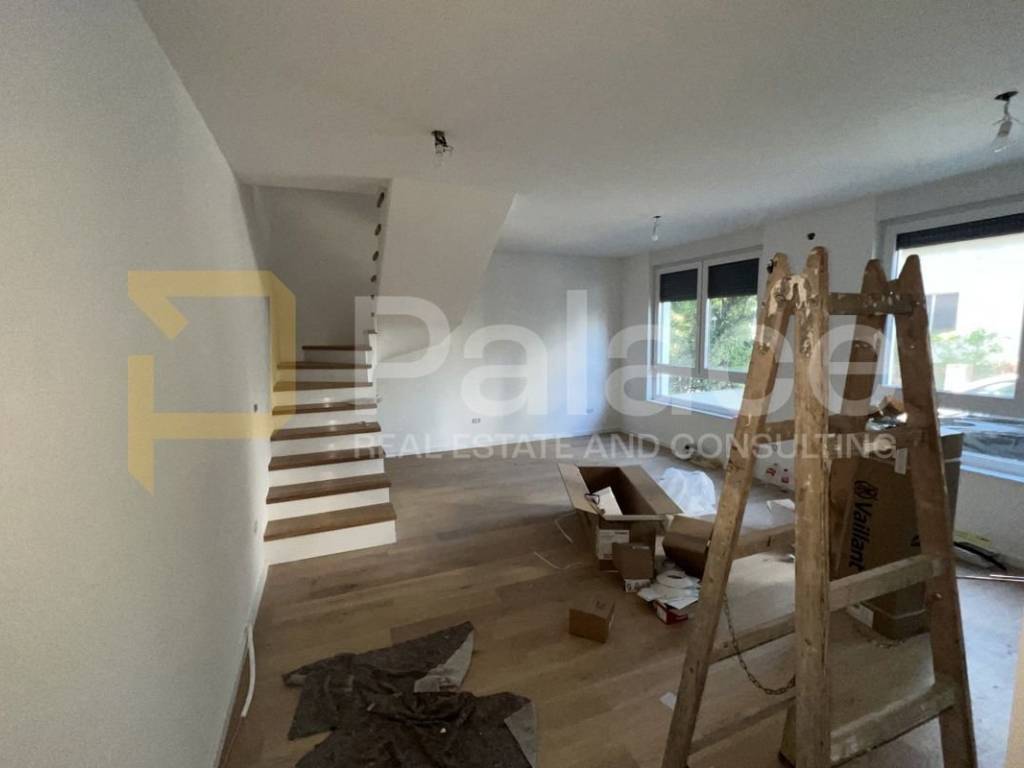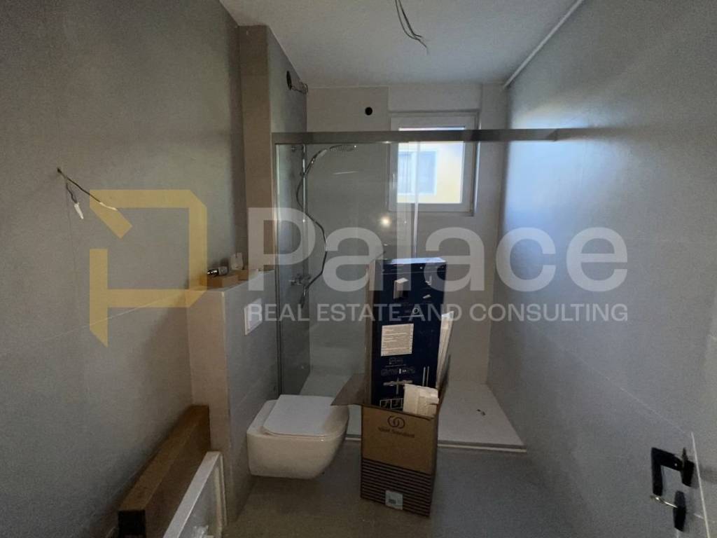 The underfloor heating is throughout the entire apartment, including the terrace, with digital thermostats for each room, a Vaillant sensor air conditioner in each room, electric shutters, and magnetic locks on internal doors.