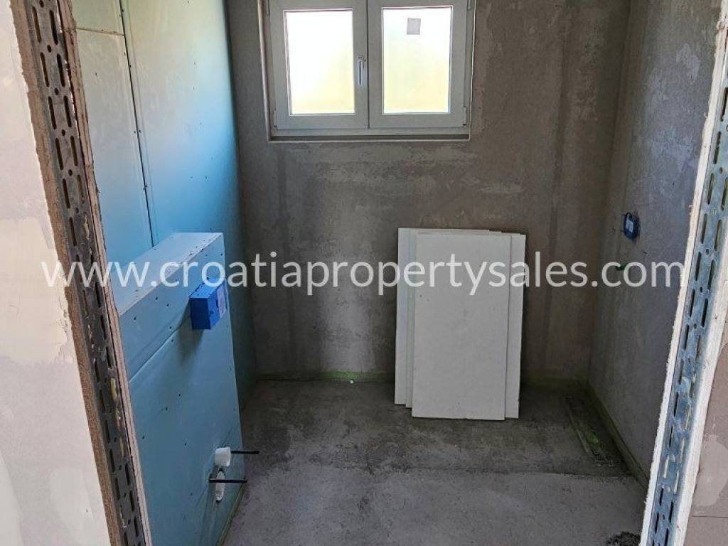 Great new property in our offer!Building with 4 apartments in total, which will range from 90 m2 to 110 m2 size. Located on Ciovo on a small slope, just 400 m from the sea. BASEMENT:3 bedroom and 1 bathroom, 1 guest toilet, kitchen and living room area – 73 m2 + covered terrace 16 m2 and uncovered terrace 18 m2 + garden 50 m2 – 260.000€ GROUND FLOOR: 3 bedroom and 1 bathroom, 1 guest toilet, kitchen and living room area – 76 m2 + covered balcony 14 m2 – 260.000€FIRST FLOOR:3 bedroom and 1 bathroom, 1 guest toilet, kitchen and living room area – 76 m2 + covered balcony 14 m2 – 320.000€ Each apartment will have floor heating in the kitchen, living room and bathroom, with one A/C unit included in the price while the connections for 2 additional units will be provided.Main entrance doors are theft and fireproof, PVC windows and sliding doors with 3-layer glass. Each apartment has 2 parking spaces. Quality materials are used in construction. The location is nice and close to all amenities, Trogir old town is just a few minutes away.