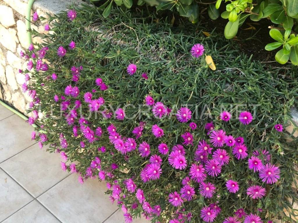 The pebble beach is just 600 meters away from the house, making it an ideal location for beach lovers. The beautiful Mediterranean garden is equipped with an irrigation system, and the house also features solar panels for water heating and central heating powered by oil.