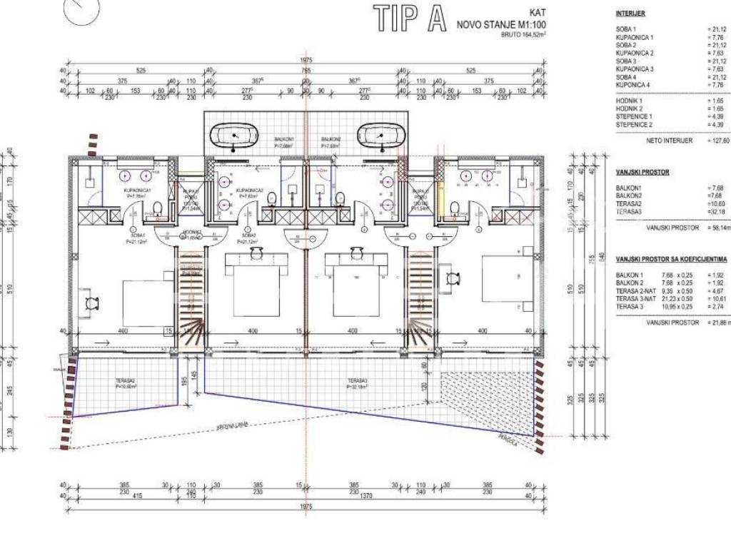 Two of which have open balconies and bathtubs (protected from view on 4 sides)