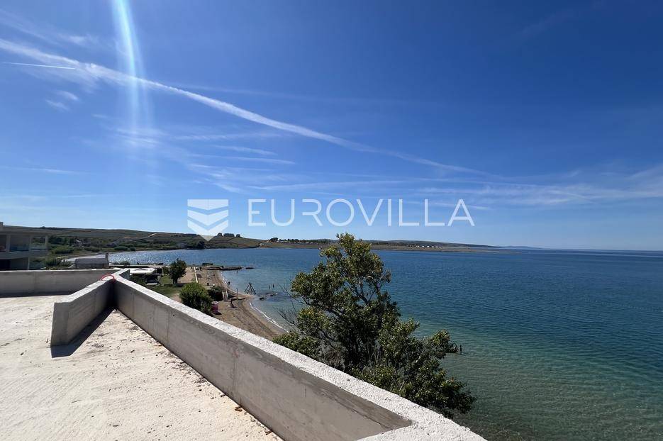EKSKLUZIVNO! Otok Pag, plaža Perilo, vrhunski projekt izgradnje šest luksuznih vila u prvom redu do mora, smještenih na prekrasnoj plaži Perilo u naselju Povljana na južnom dijelu otoka Paga.Navedeni stan nalazi se na drugom katu zgrade. Zatvorene je površine 64.60 m2, s terasom od 15.10 m2 (7.55) i krovnom terasom s pergolom veličine 77.85 m2 (19.45); Ukupno NKP: 91.60 m2. Stan se sastoji od ulaznog hodnika, kuhinje open space koncepta povezane na blagovaonicu i dnevni boravak s direktnim izlazom na terasu, dvije kupaonice, te dvije spavaće sobe. Stan je sjevero-zapadne orijentacije. Uz stan obavezna kupnje garažnog parkirnog mjesta ili vanjskog parkirnog mjesta, te mogućnost kupnja spremišta.Projekt započinje s prvom faze izgradnje dvije urbane vile s po 6 stanova, za koje je ishođena pravomoćna građevinska dozvola, a projekt obuhvaća ukupno šest stambenih jedinica koje će se izvoditi u etapama. Svaka zgrada je pažljivo pozicionirana tako da svaki stan omogućava pogled na prekrasne zalaske sunca izravno nad Jadranskim morem.Konstrukcija: armiranobetonska, visokih tehničkih i estetskih standardaStanovi u prizemlju: vlastiti bazen i privatno dvorištePenthouse stanovi: prostrane krovne terase s pergolom za odmor i panoramski pogledUdaljenost od mora: doslovno nekoliko koraka do plažeVisina stropa: 270 cmOprema stanova: vrhunska talijanska keramika s podnim grijanjem, troslojni hrastov parket, Schuco aluminijska stolarija, Kolnoa vrata, inverter Samsung klima uređaji, električno podno grijanje.Za kupnju je potrebno izdvojiti 10% kapare, a ostatak kupoprodajne cijene isplaćuje se pri realizaciji projekta, druga polovica 2026. godine. Za sve dodatne informacije stojimo na raspolaganju!