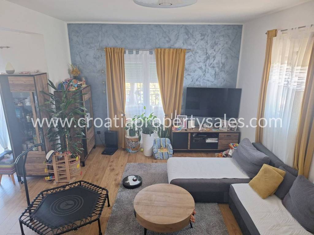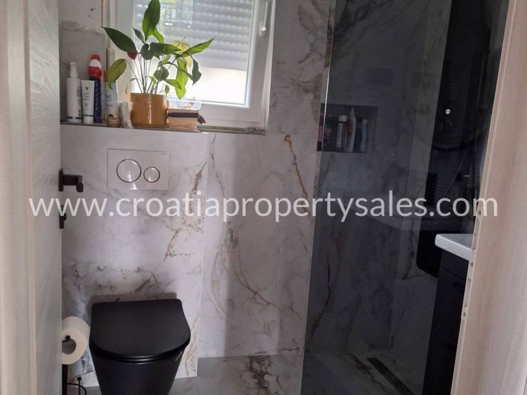 In a quiet fishing village between Trogir and Rogoznica lies this charming three-story house with a total gross building area of 272 m2.It is situated on a 364 m2 plot and divided into two separate apartments—a two-bedroom unit on the ground floor and a spacious four-bedroom duplex spanning the first and second floors.The house is being sold fully furnished and equipped. In front of the property, there is ample parking space for several vehicles, and the garden is well-maintained and landscaped, providing a pleasant outdoor area for relaxation.The location is excellent for tourist rental, with a beach featuring crystal-clear sea just 70 meters away.
