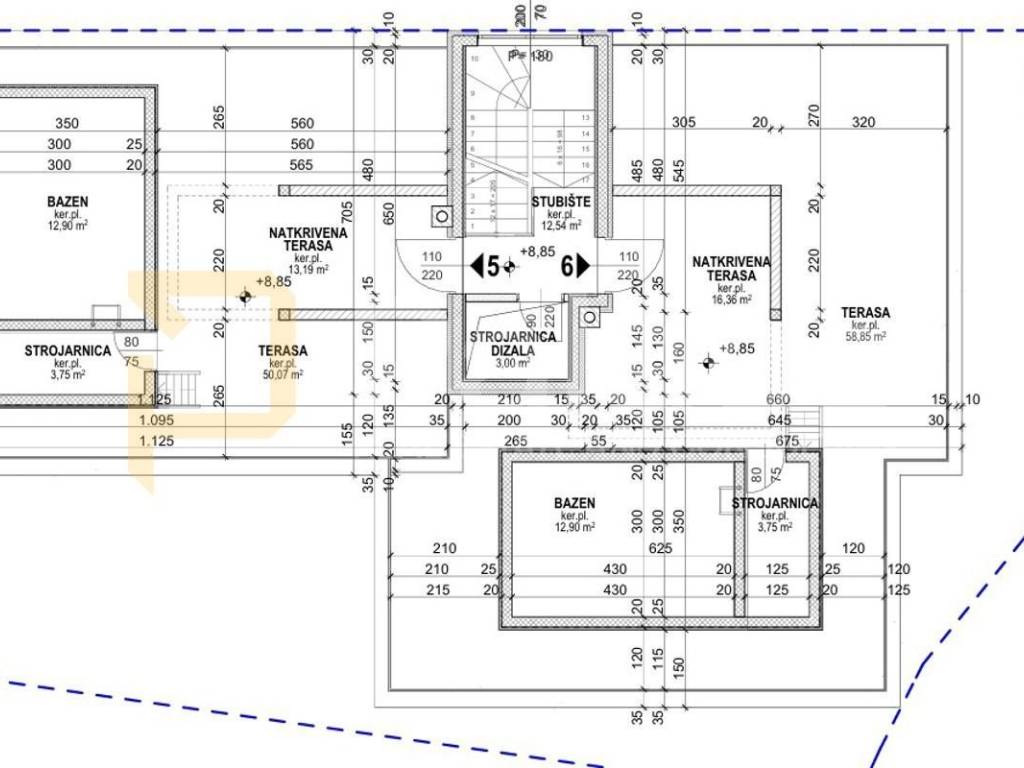 The apartment also has a rooftop terrace with a pool offering open sea views. A parking space is provided in the garage, as well as a corresponding storage room in the basement. The storage area is 4.54 m2, and the garage space is 7.26 m2, giving a total area of 106.88 m2.