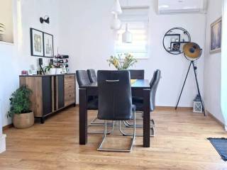 In a quiet location, 2nd row from the sea, a completely renovated house is for sale, with a total area of ​​275 m2. It consists of two separate residential units – a two-bedroom apartment on the ground floor and a four-bedroom apartment spread over two floors.   On the ground floor there is a living room and kitchen with dining room, two bedrooms and a bathroom.   The two-story apartment includes an open concept living room with kitchen and dining room, four bedrooms, 2 bathrooms, laundry room, covered terrace (8 m2), uncovered terrace (15 m2) and a balcony with a sea view.   The property also includes a 20 m2 storage room, and the landscaped garden includes parking space for three vehicles.   It is being sold fully furnished and equipped.   The location is quiet, with a very beautiful view of the sea and the bay. The distance to the nearest beach is just over 50 meters, which makes this property suitable for tourist purposes or year-round residence.