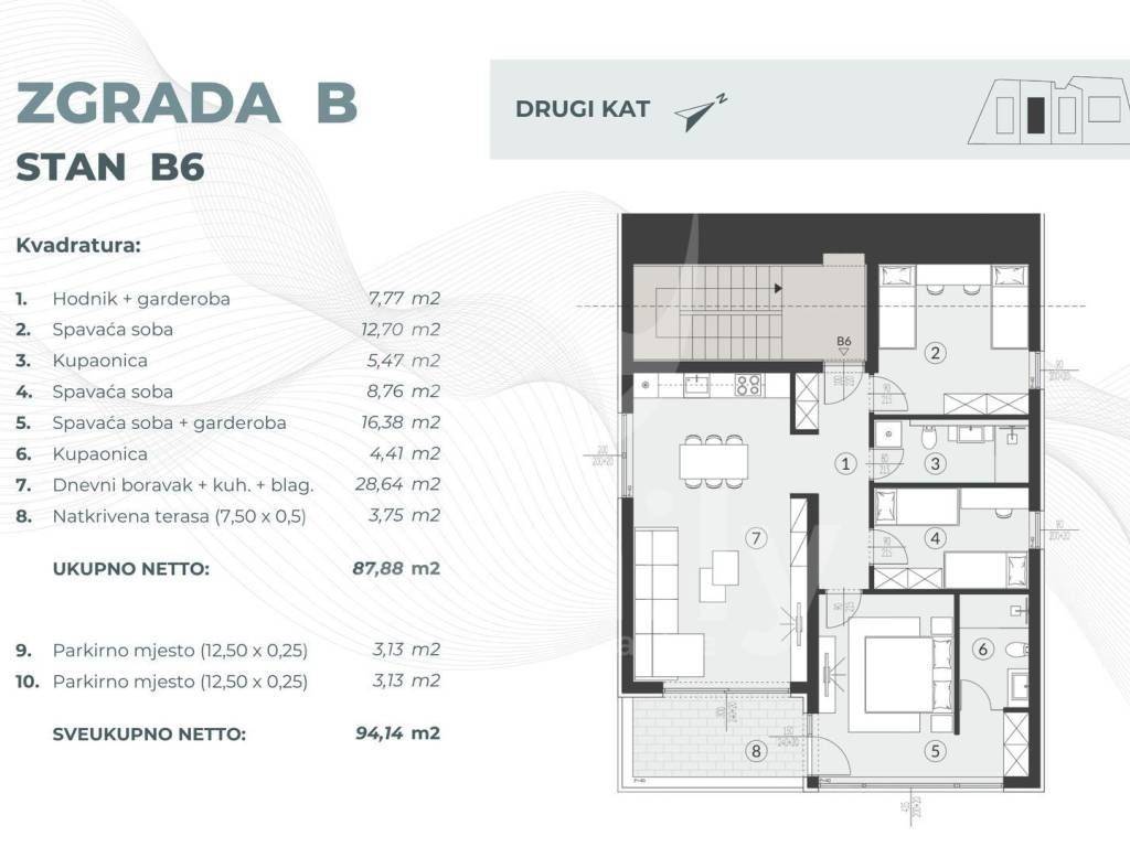 Fažana is a beautiful small fishing village located in the southwest of Istria, opposite the Brijuni National Park, and in the last few years it has become one of the top tourist destinations in Croatia, thus attracting a large number of visitors, and is also suitable for investments with a short payback period.It is in Fažana, in the immediate vicinity of the center and the first well-maintained beaches, that the construction of four modern buildings with a total of 23 residential units is planned. Behind the project is a proven investor, and the construction itself will be of high quality, luxurious and unique. The apartment with an area of 94.14 m2 will be located on the second floor of the building and will consist of a hallway with a wardrobe, three bright bedrooms, two bathrooms, a modern open space living room connected to the kitchen and dining room and access to a covered terrace. As part of the project, a shared swimming pool of 85 m2 will be available to all residents. All buildings have anti-burglary entrance doors with high sound insulation and increased fire resistance, underfloor heating in the bathrooms with the option of paying extra for other rooms, three-layer French-type PVC carpentry on all external openings with blinds and mosquito nets, as well as top-quality ceramic tiles with the option of choosing a design according to your wishes. Heating and cooling will be regulated through the air conditioning unit.The mentioned real estate represents a very interesting opportunity considering its area, the proximity to the sea, the associated swimming pool as well as the proximity to the center of Fažana as well as all its accompanying facilities, and it offers the future owner the opportunity to enjoy the same or engage in tourist rental, which would certainly speed up the return of the invested funds.FOR ALL OTHER INFORMATION, CALL:+385 98 174 8680