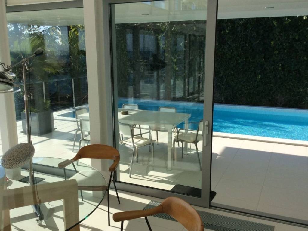 A unique villa is for sale located first row to the sea.   The total living area of ​​650 m2 is spread over three floors.   On the first floor there is a large work space that can easily be converted into additional bedrooms and bathrooms.   The second floor consists of a spacious living room, kitchen with dining room, bedroom, wardrobe and bathroom. The entire floor has access to the terrace with a swimming pool.   The third floor, also the last, consists of two bedrooms, each with its own bathroom and a space for socializing.   The floors are connected by internal stairs and an elevator. Each terrace offers a beautiful view of the sea.   The yard is completely fenced, ensuring privacy.   Private parking is provided for 3 vehicles.   A unique location, magnificent views, modern architecture and designer furniture are just some of the advantages of this exclusive villa.