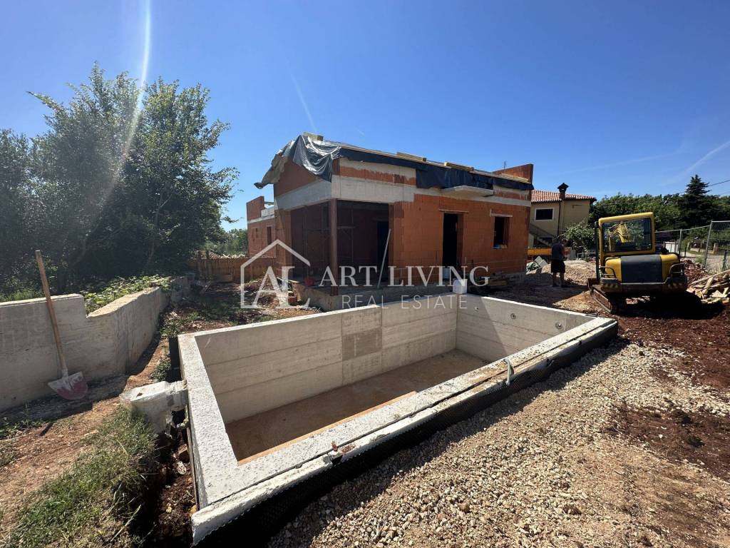 An attractive semi-detached house for sale with a swimming pool in a new building, modern architecture, near all essential facilities, 4.5 km from the sea, 7 km from charming Novigrad and 14 km from the center of Umag.