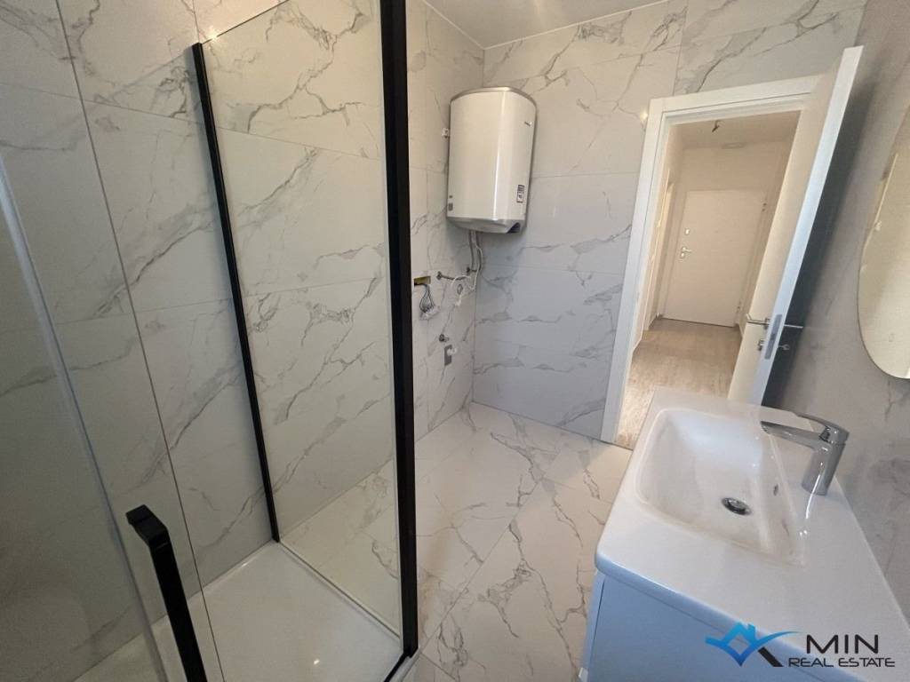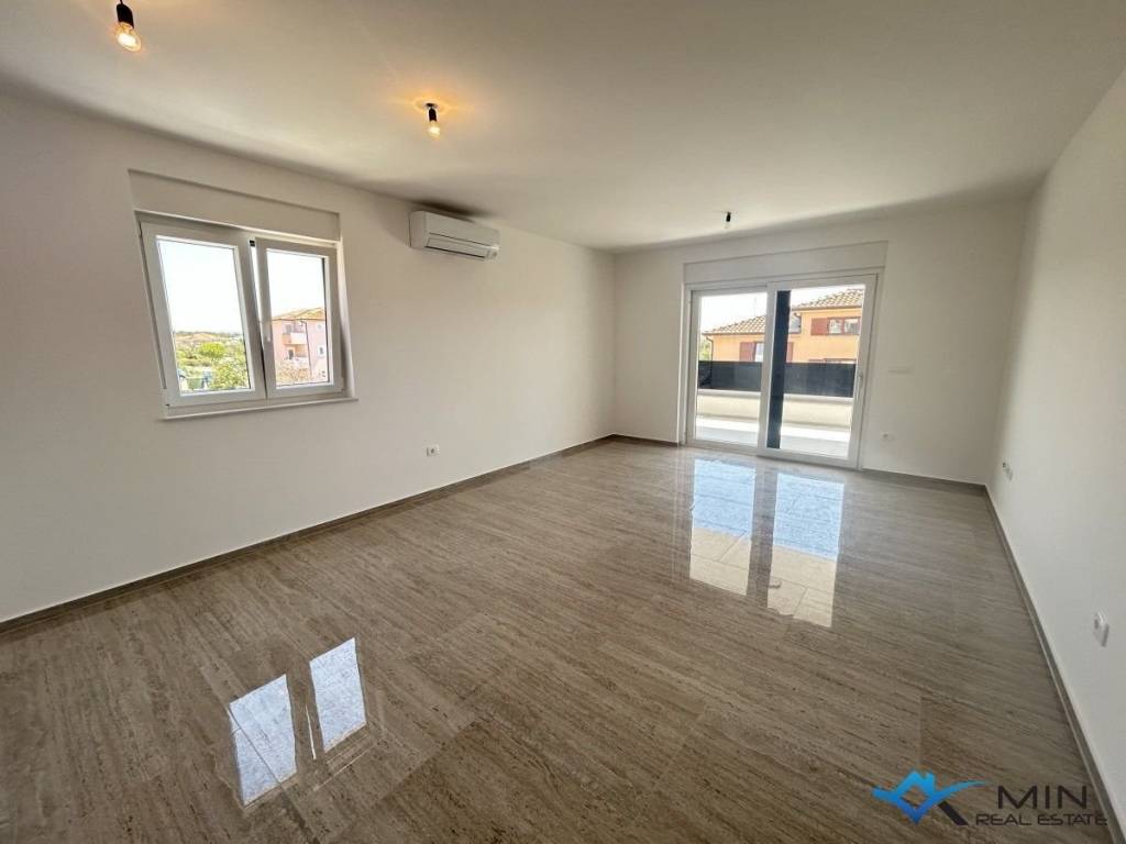 For sale is an apartment under construction located on the 2nd floor of a residential building with a total of 8 apartments. The apartment is 78 m2 and consists of a hallway, 2 bathrooms 2 bedrooms and an open space area where there is a kitchen with a dining room and a living room with access to a terrace with a beautiful view of the sea. Heating and cooling in the apartment is via underfloor heating in the bathroom, air conditioning and a chimney, so there is a possibility of installing a fireplace or pellet stove. The apartment can be used for residential or tourist purposes. The distance from the sea and the beautifully decorated beach is 800 m, and the center of Novigrad is 1000 m away.